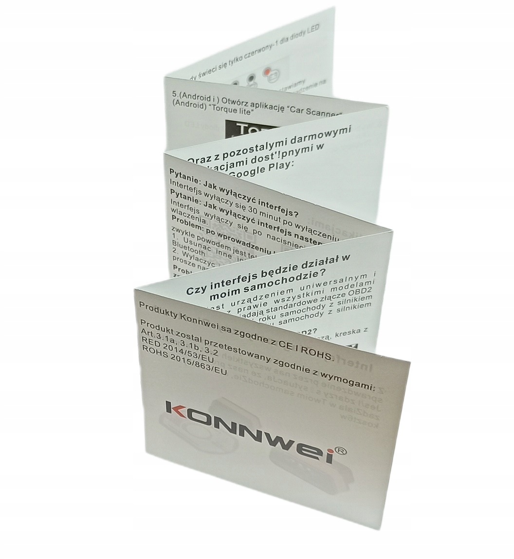 - Подключите интерфейс к порту OBD в автомобиле, подключите устройство с соответствующим приложением и готово (к интерфейсу прилагается подробная инструкция на польском языке)