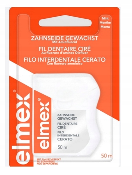 - Инновационная нить - наводная зубная нить с нилоном с технологией с технологией много -временной эксплуатации. Стоматологи, стоматологическая нить Elmex воск и универсально подходит для всех зубов, в частности для чувствительных десен и узких пространств между зубами, в качестве дополнения к ежедневной чистке зубов, потому что она очищает твердое пространство между зубами, которые щетка не достигает.