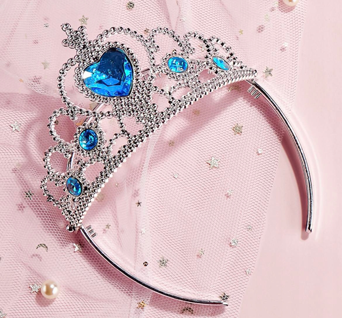- Серебряная корона принцессы, украшенные голубыми кристаллами,