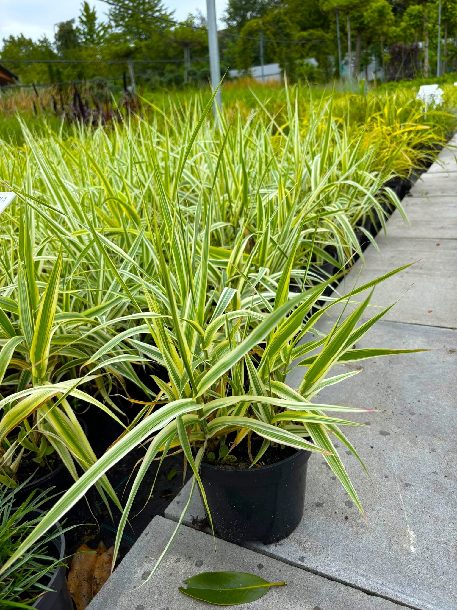 Представьте себе величественную траву с экзотическим шармом, которая привнесет тропическую атмосферу в ваш сад. Тростниковая славка 'Ely' образует компактные, высокие куртины, достигающие 1,5-2 м, а их широкие свисающие листья с отчетливой кремовой каймой привлекают внимание. В теплое лето побеги могут быть украшены нежными пушистыми соцветиями зеленых и фиолетовых оттенков, придающими им легкость и структуру. Это растение станет доминирующим акцентом в вашем саду, создав естественную ширму или элегантный фон для более низких растений.