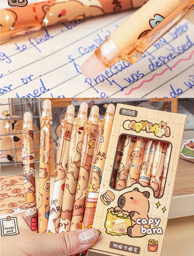 Набор из 6 гелевых ручек с мотивом капитализации - это не только практический инструмент для письма, но и настоящее удовольствие для поклонников этих милых существ. Каждая ручка украшена уникальным рисунком - от выразительных цветов до тонких деталей - создание небольшого произведения искусства, которое нравится глазу с каждым использованием.