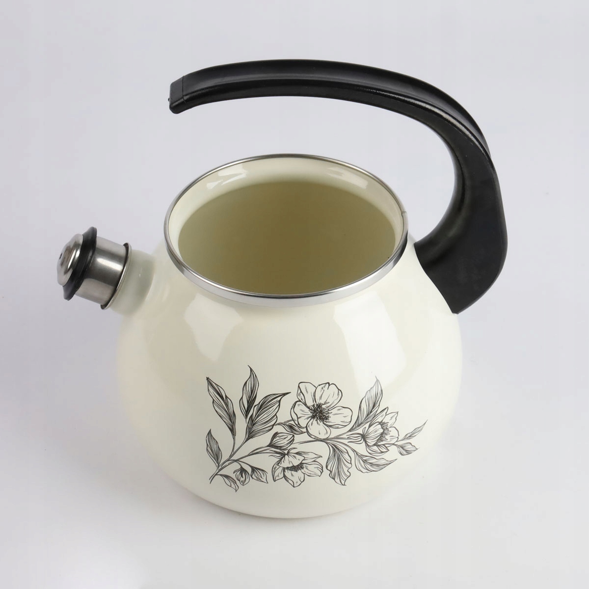 Чайник изготовлен из высококачественной углеродистой стали с покрытием с эмалью, что гарантирует более быстрое распределение тепла и более длительное сохранение тепла. Кроме того, это сырье не влияет на вкус, запах и свойства кипяченой воды.