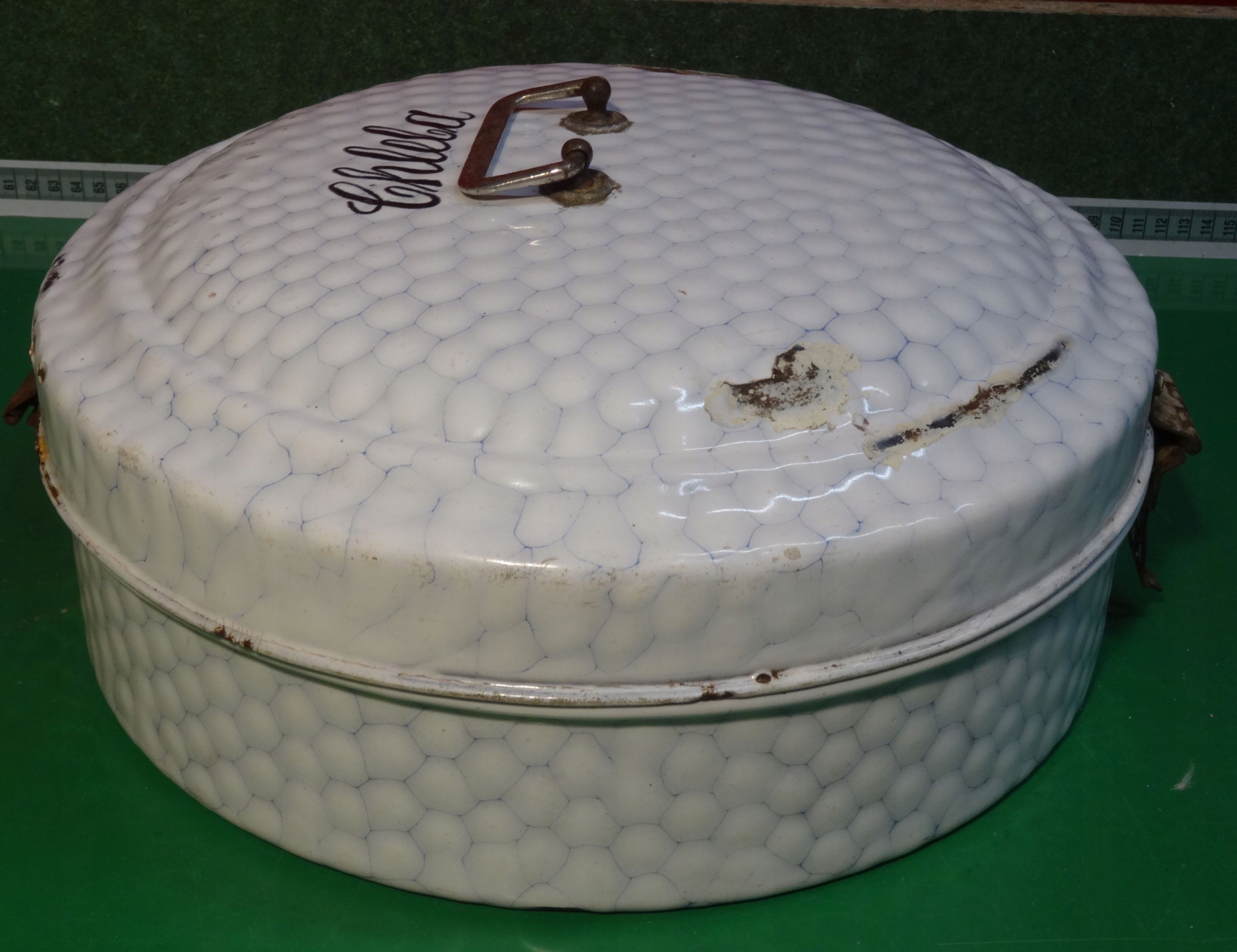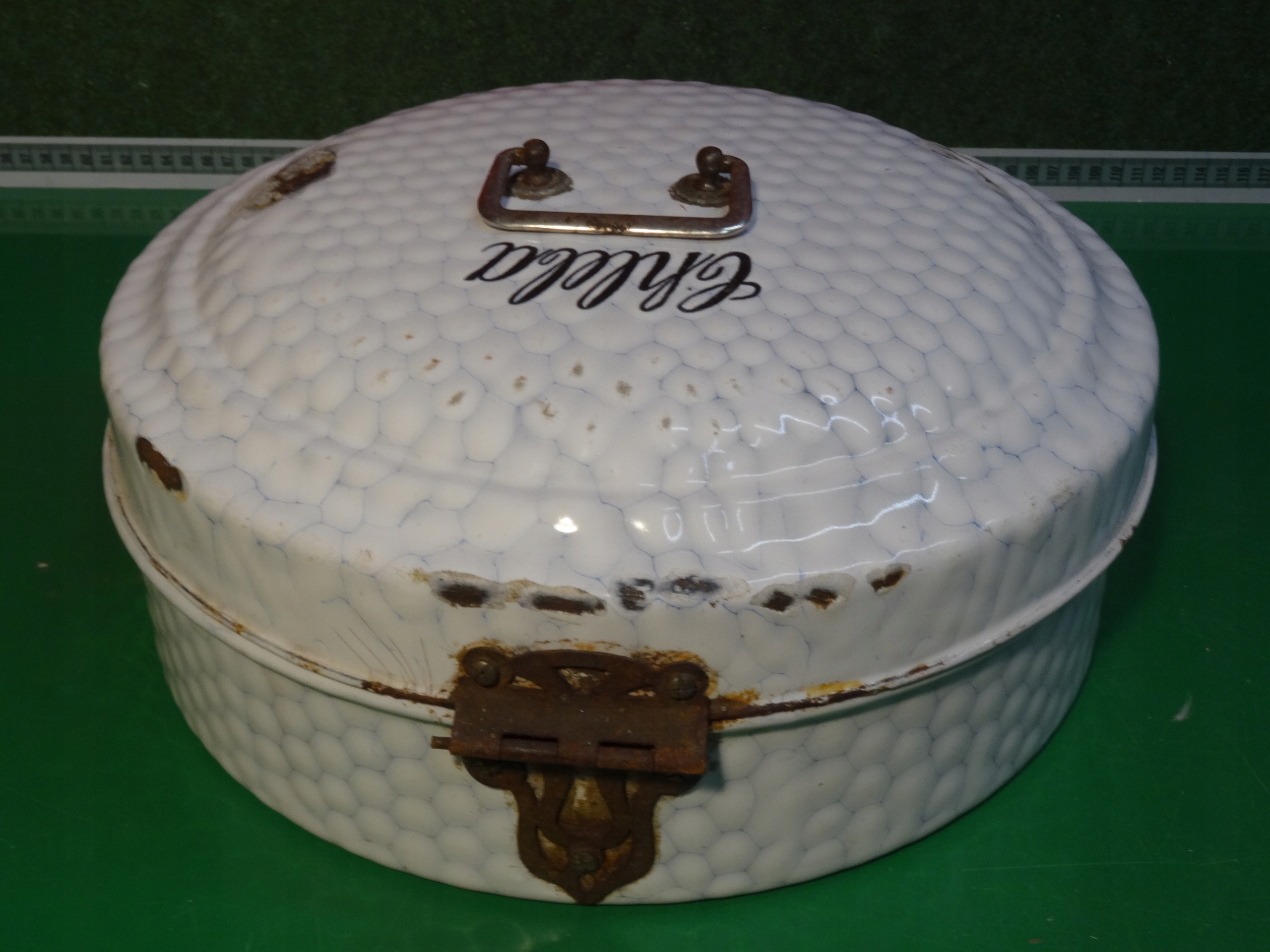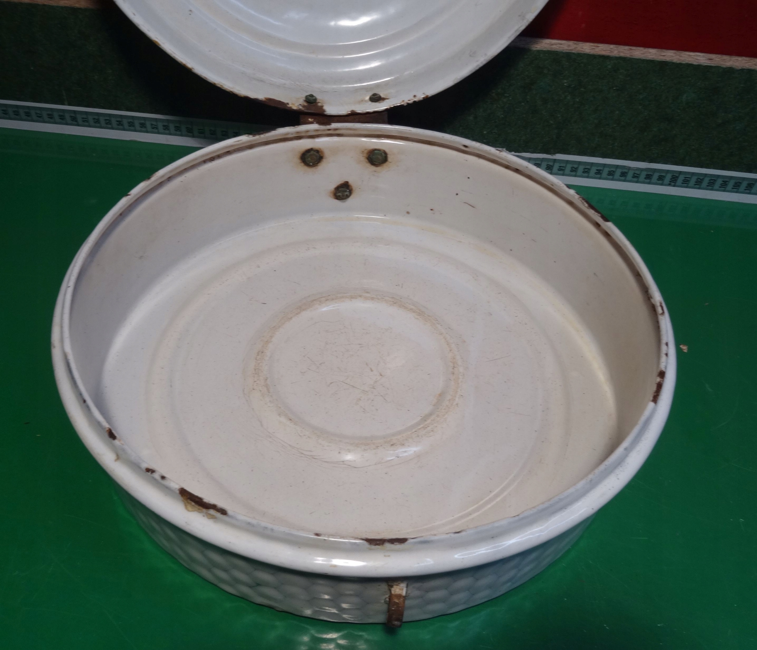 эмалированный предварительно -уборенный хлеб с надписью вдоль края хлеба. При хорошем закрытии олова. Для обновления есть подготовки к эмалированным дополнениям. Состояние, как на фотографиях
