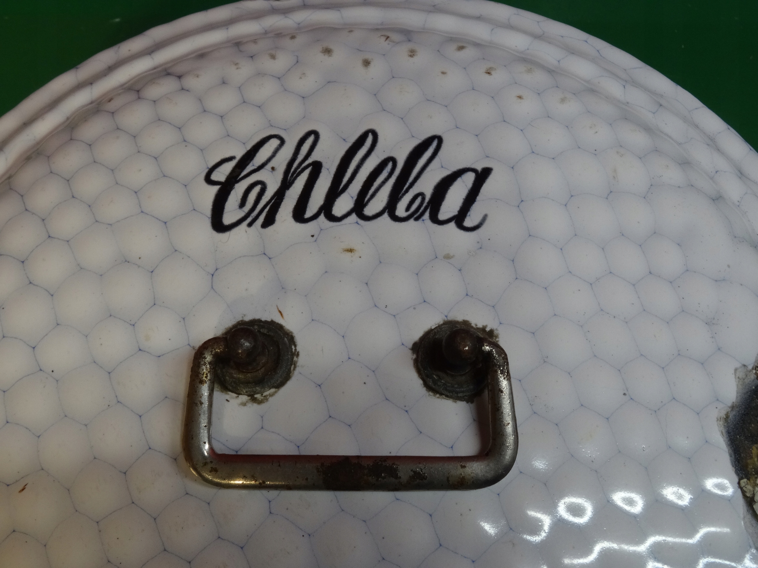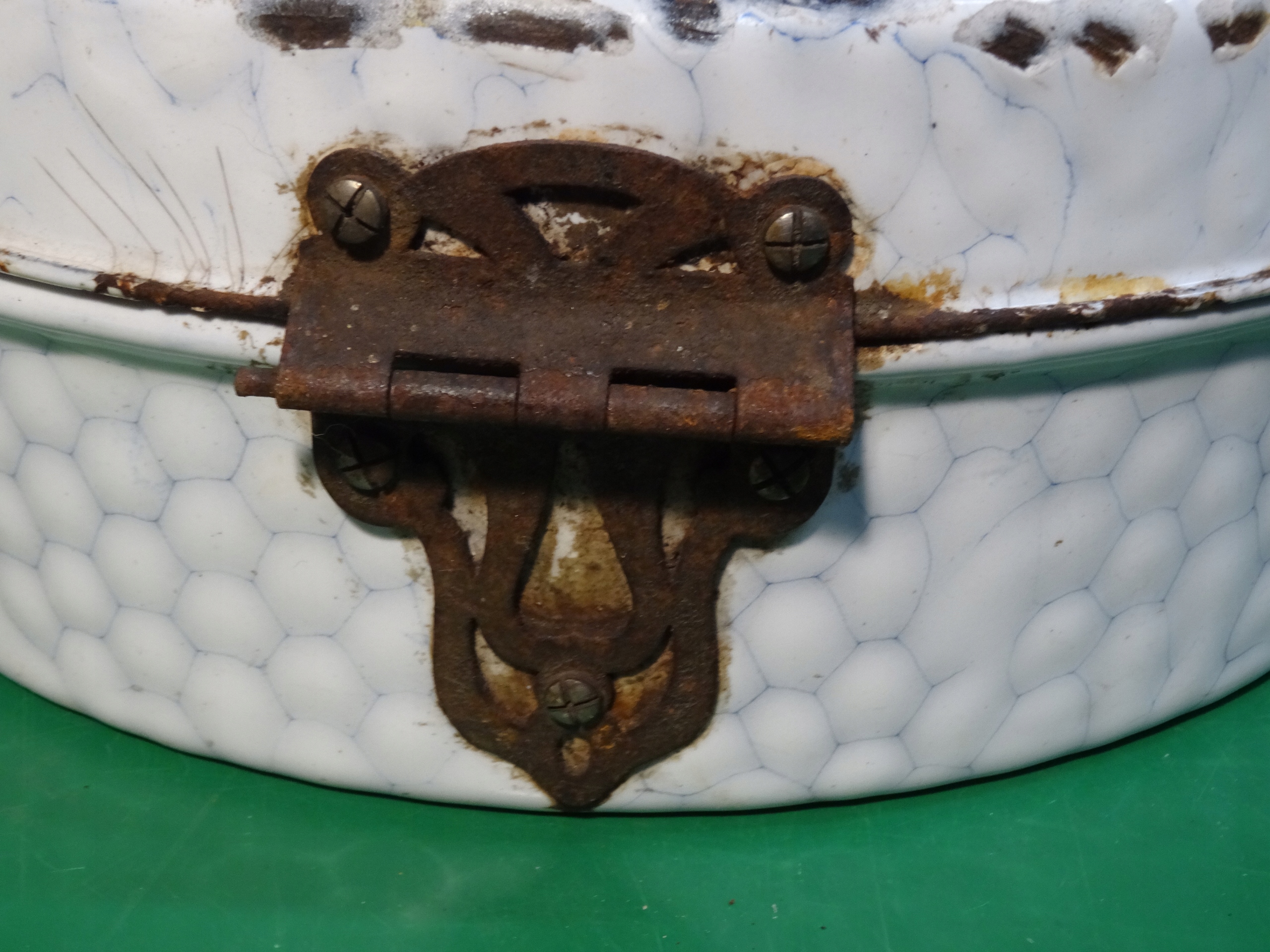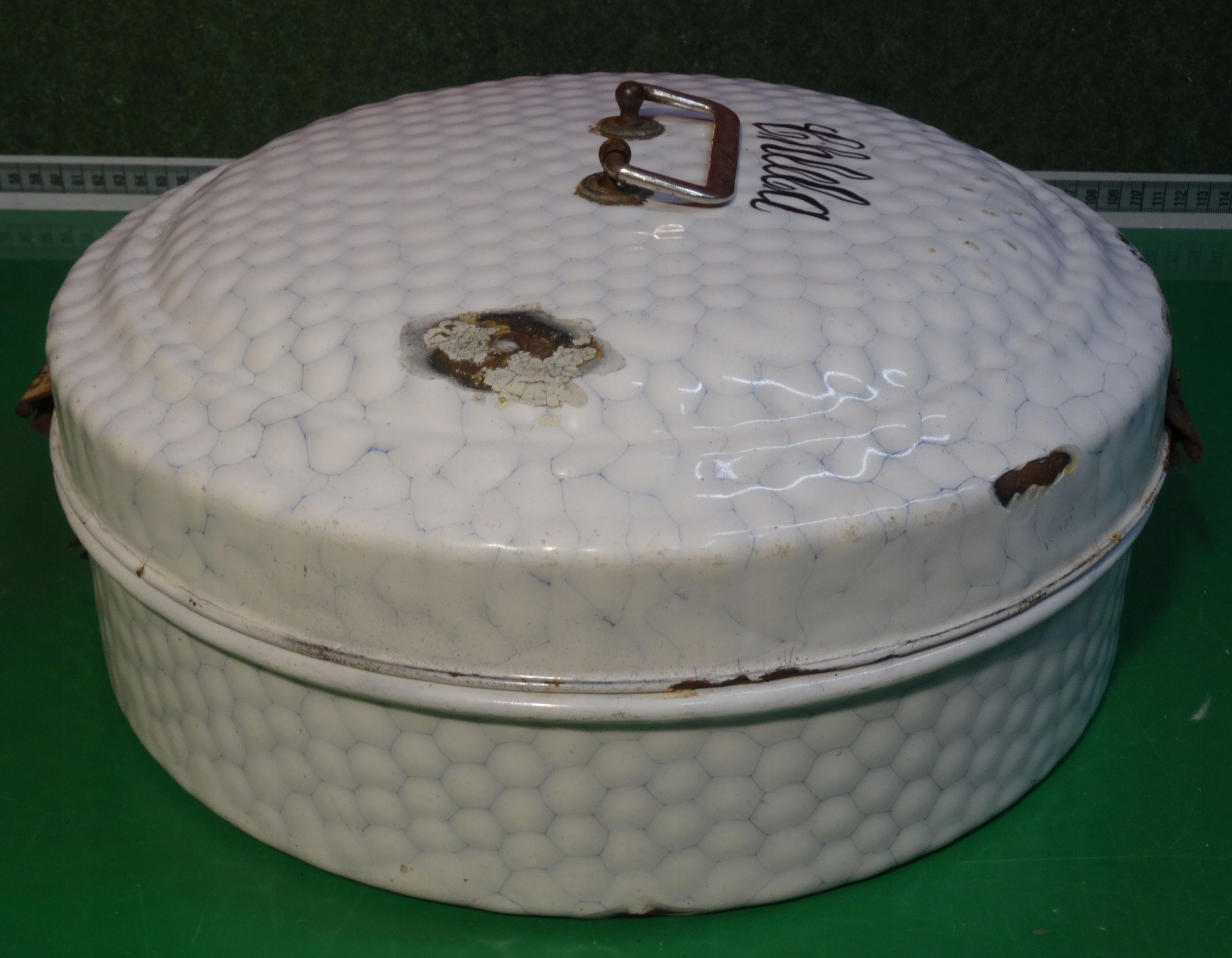 эмалированный предварительно -уборенный хлеб с надписью вдоль края хлеба. При хорошем закрытии олова. Для обновления есть подготовки к эмалированным дополнениям. Состояние, как на фотографиях