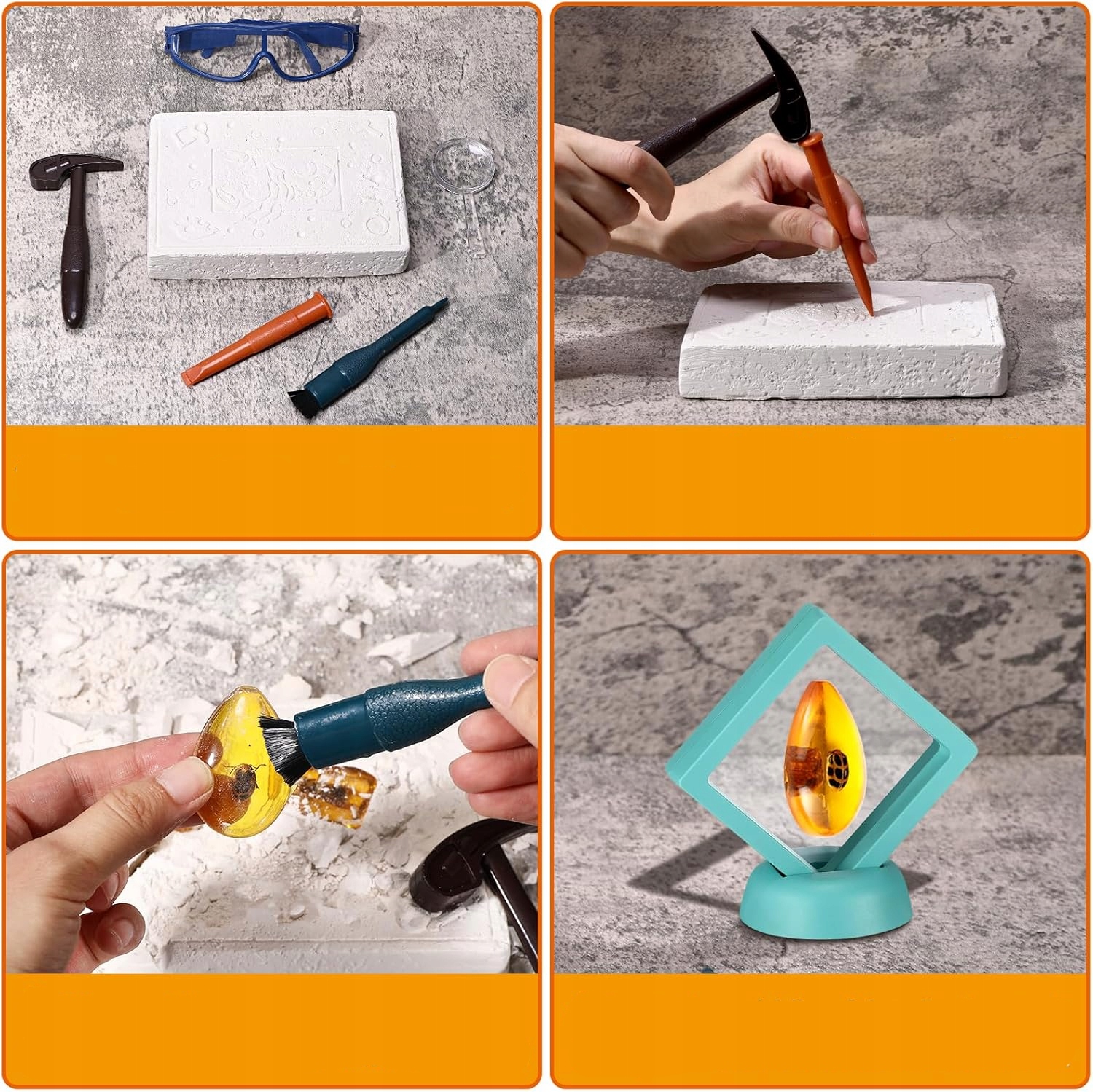Откройте для себя увлекательный мир геологии и энтомологии! этот набор передаст вашего ребенка в мир раскопок, где он будет чувствовать себя настоящим палеонтологом, обнаруживая сокровища, спрятанные в янтаре.