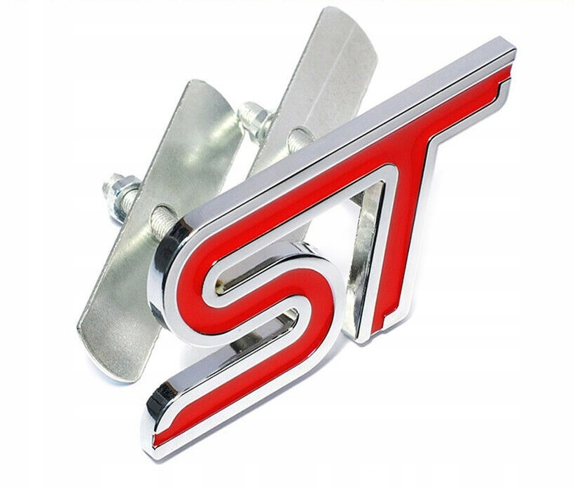 Эмблема с винтами Ford ST на решетку радиатора автомобиля — красный/серебристый глянец
