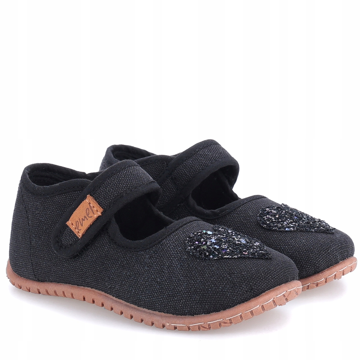 emel Kids's Slippers Черные липучки в сердечном блесте 103-4 h2>