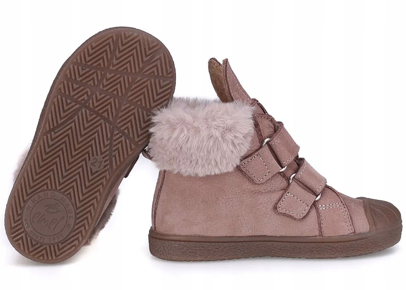 Детская обувь «Эмель», модель EY2758G-3, с водонепроницаемой мембраной и легким утеплителем, украшенная искусственным мехом и милыми ушками.