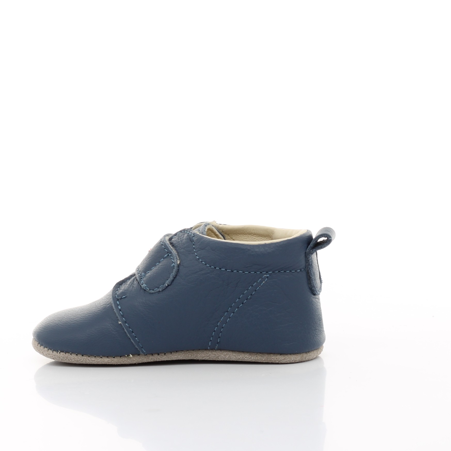Темно-синие детские туфли - изготовлены из натуральной кожи высочайшего качества. Внутренняя отделка выполнена из мягкой кожи, защищающей от истирания. Кожаная вставка. Регулируемая застежка на липучке. Они имеют широкий кончик, что дает свободу пальцам. Подошва мягкая и гибкая.