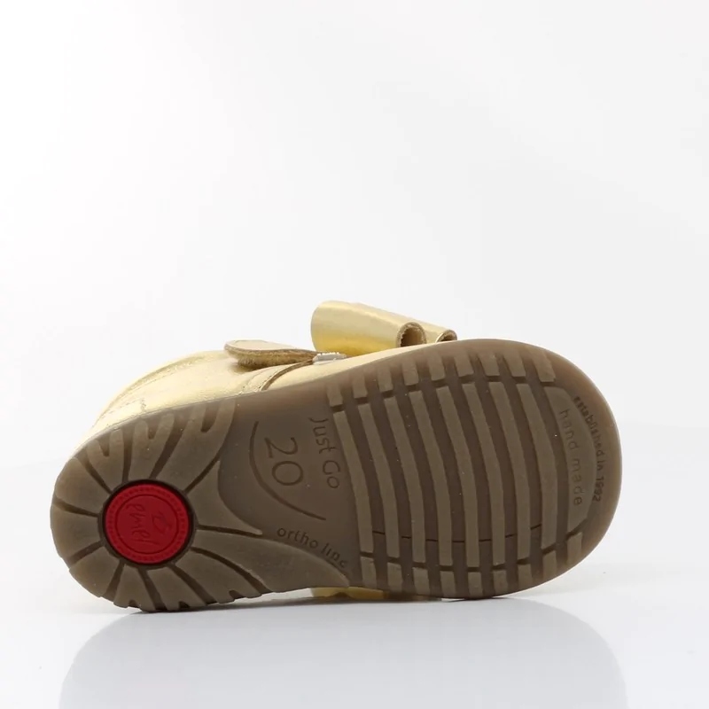 Золотые туфли - идеальны для обучения ходьбе, изготовлены из натуральной кожи высочайшего качества. Обувь достаточно устойчива и гибка, внутренняя отделка выполнена из мягкой кожи, защищающей от истирания. Профилированная кожаная стелька - правильно формирует развитие стопы. Регулируемая застежка на липучке. Они имеют широкий кончик, что дает свободу пальцам. Гибкая и нескользящая подошва.