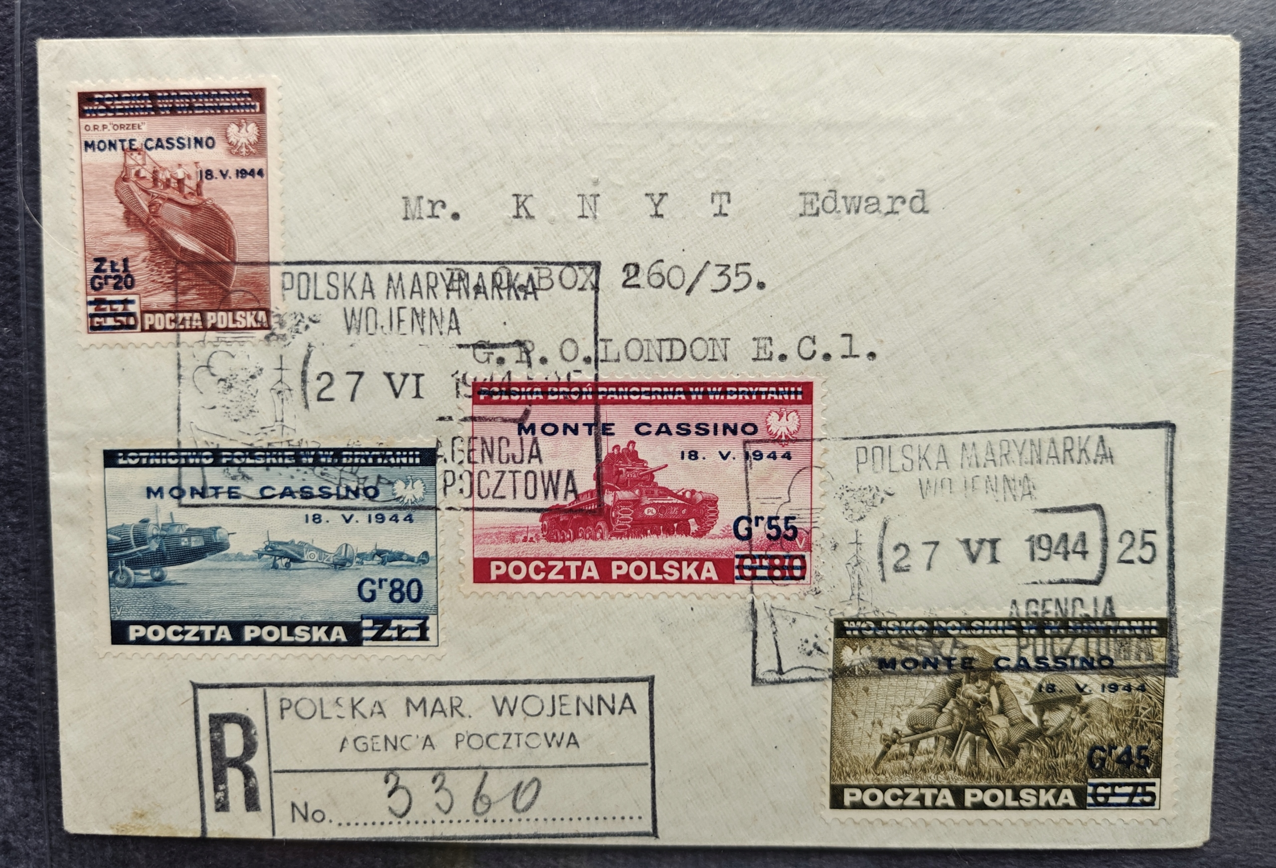 Еміграція 338 П-Т Конверт рекомендований, 27.6.1944 Б393
