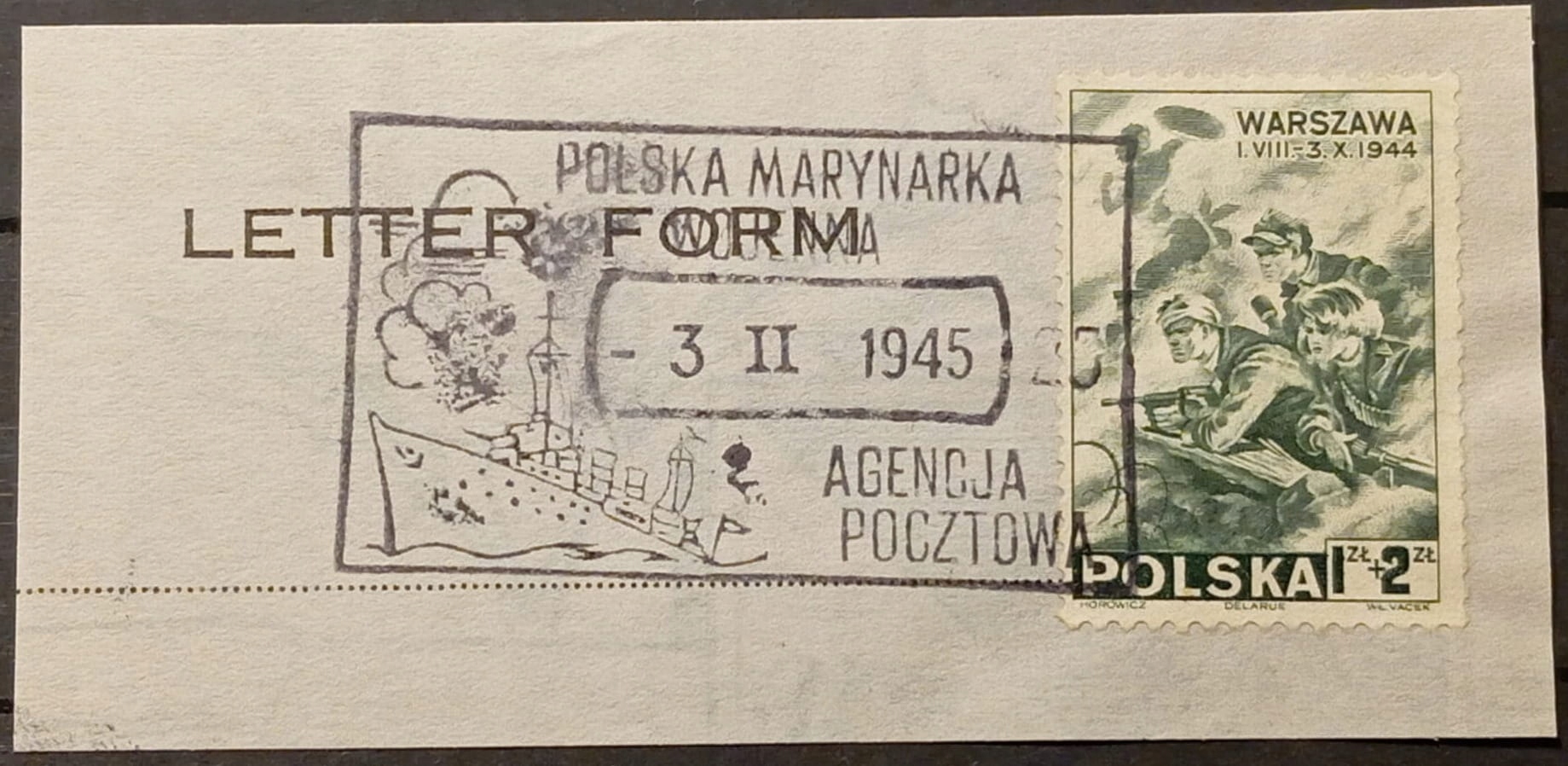 ЭМИГРАЦИЯ Fi 21 FDC 1945 г., отрывок из Варшавского восстания