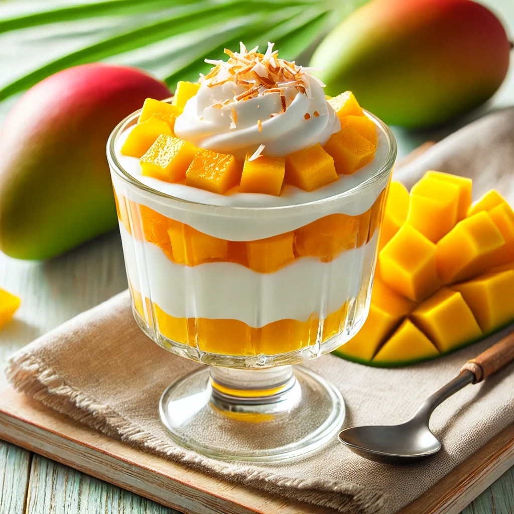 - 1 манго -желе (79 г) 2 столовые ложки натурального или кокосового йогурта