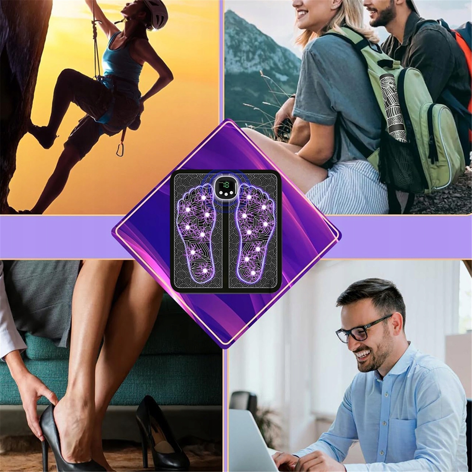 - Этот массажер для ног специально разработан для любителей спорта, пожилых людей и офисных работников, которые проводят много времени сидя или стоя (особенно тех, кто носит высокие каблуки). Массаж ног в ванне эффективно балансирует ступни и пятки, расслабляет икроножные мышцы и моделирует их форму. Этот массажер для ног также станет прекрасным подарком для друзей и семьи.