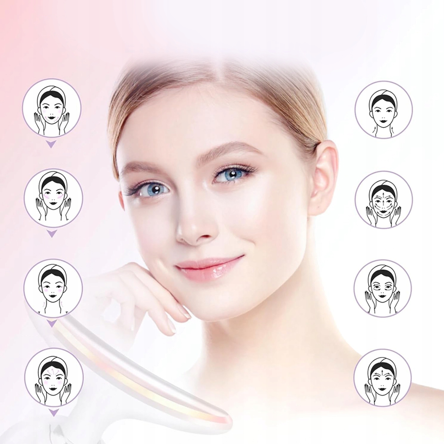 Массажер для лица предлагает четыре вида ухода за кожей: EMS-укрепление, омоложение кожи, подтяжка лица, уменьшение морщин. Он обеспечивает различные виды ухода за кожей, а благодаря 3 режимам светодиодной подсветки (синий, красный, фиолетовый) он предлагает больше возможностей для решения различных проблем с кожей.