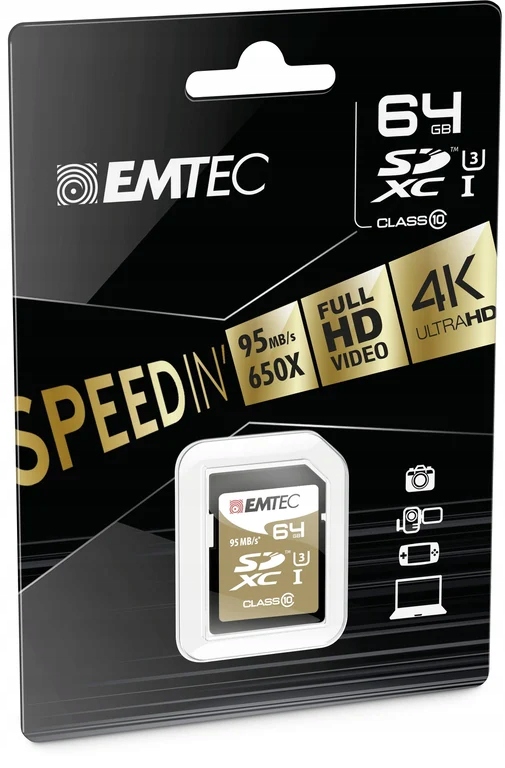 emtec ecmsd64gxc10sp. Емкость: 64 ГБ, Флэш -карта Тип: SDXC, Флэш -память Класс: класс 10, скорость чтения со СМИ: 95 МБ/с, Скорость сохранения носителя: 90 мб/с. Цвет продукта: черный