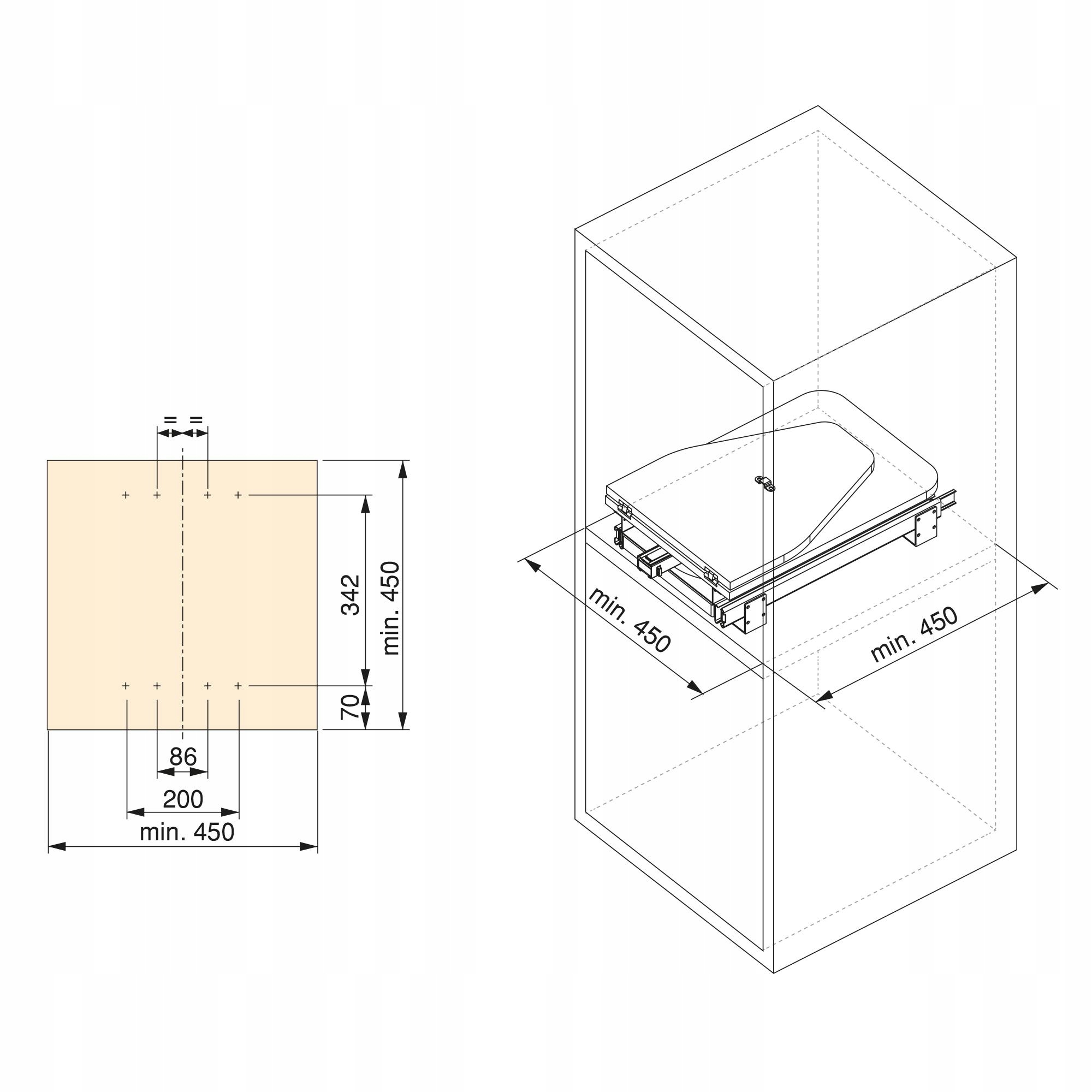 Для установки необходима минимальная глубина мебели 450 мм и минимальная ширина (во внутреннем пространстве) 450 мм. В комплект входят винты и инструкция по сборке.