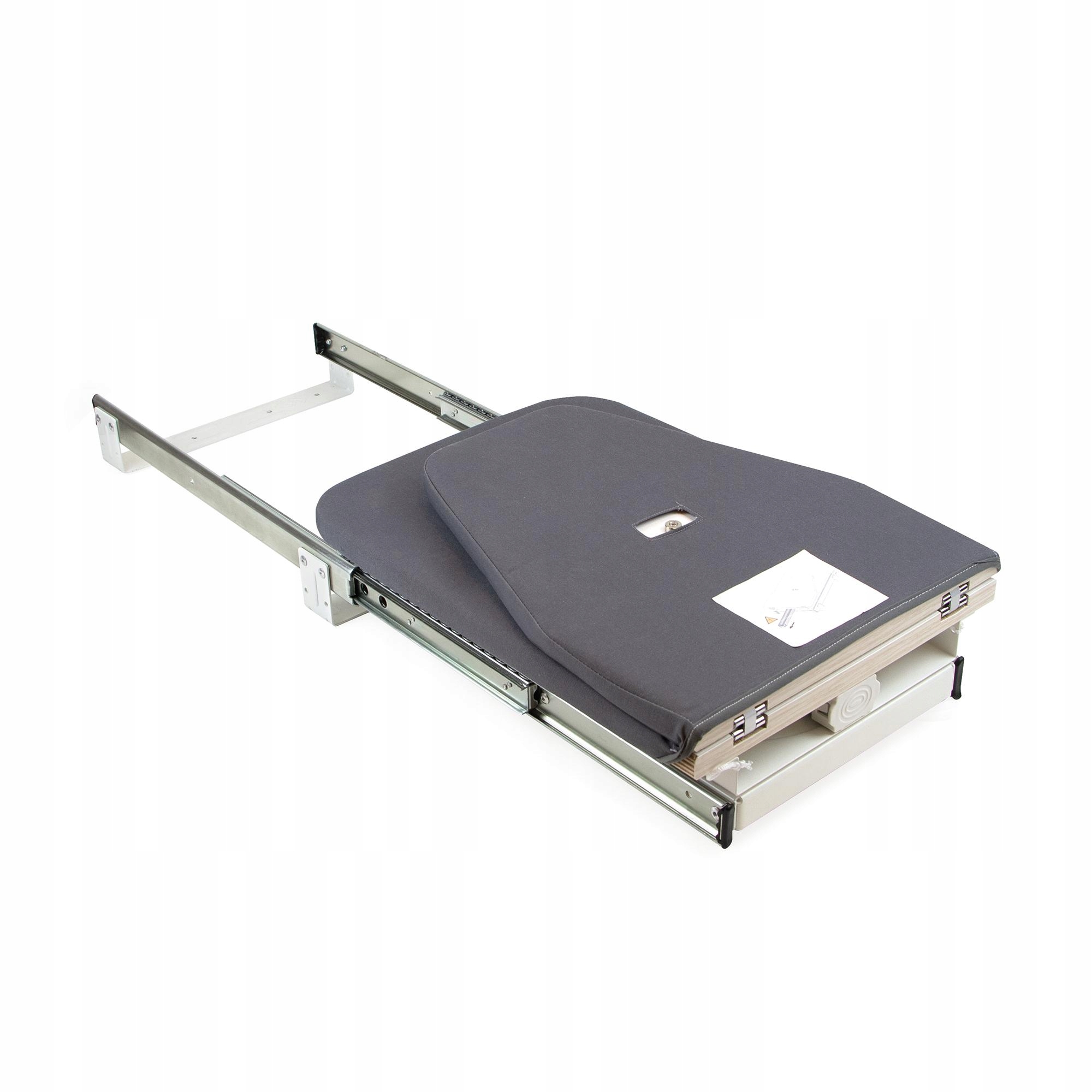 Его установка чрезвычайно проста, без необходимости сверления, достаточно прикрутить ее к поверхности мебели. После установки доска плавно и бесшумно выдвигается благодаря шариковым направляющим с системой поддержки открытия и закрытия. Комплектуется съемным чехлом, что облегчает чистку и уход.