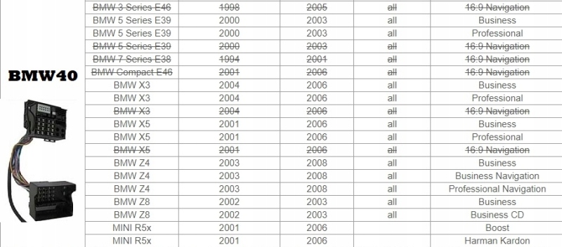 BE6507(E39 BMW Business), PH7030(BMWBusiness), PH8030(BMW Business CD), CD53 E39/53(BMW Business CD,Alpine) и т. д.