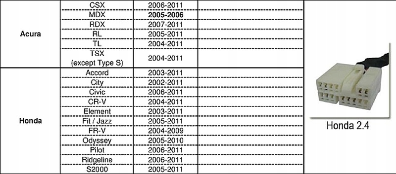 Типы разъемов Honda: