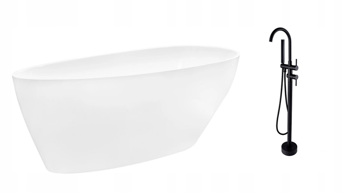 Комплект отдельно стоящего акриловая ванна от польского производителя BESCO, 142 см + слив Alcaplast click-clack + черный отдельностоящий смеситель