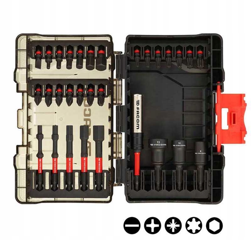En.1j30pb - набор ударов по воздействию и аксессуары 1/4 ", 30 элементов, Facom