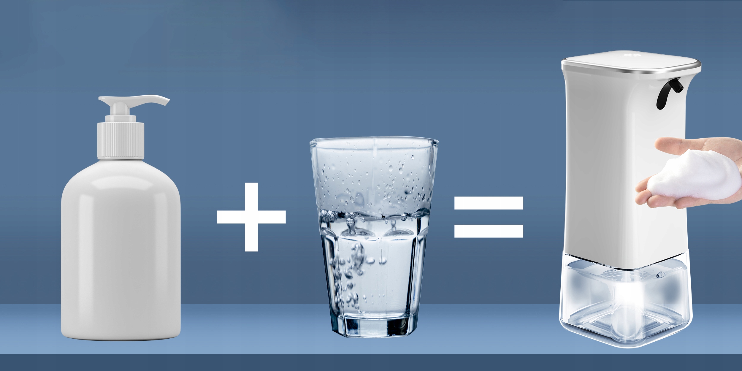 Просто поднесите руку к дозатору, и устройство выработает пену.