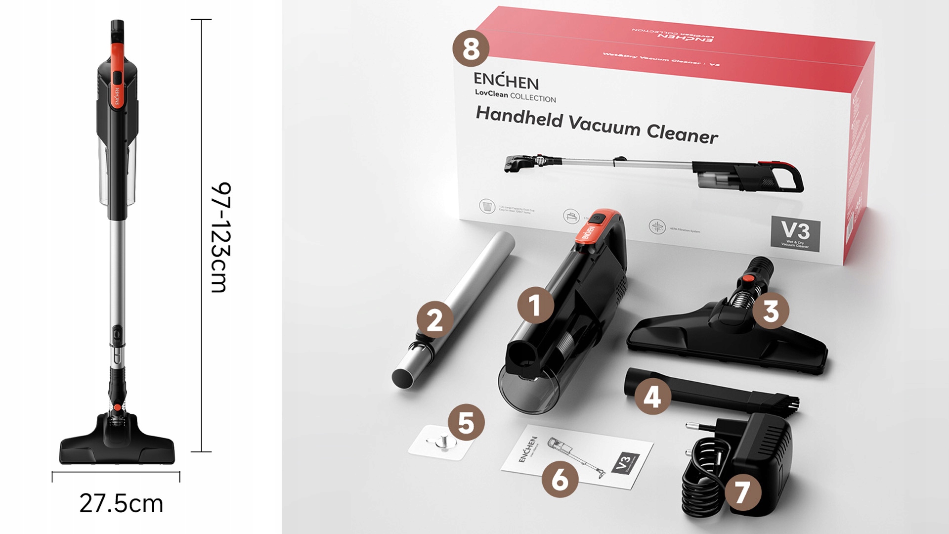 беспроводная вертикальная вакуумная очиститель Enchen V3 плюс легкий HEPA 2IN1 h1>