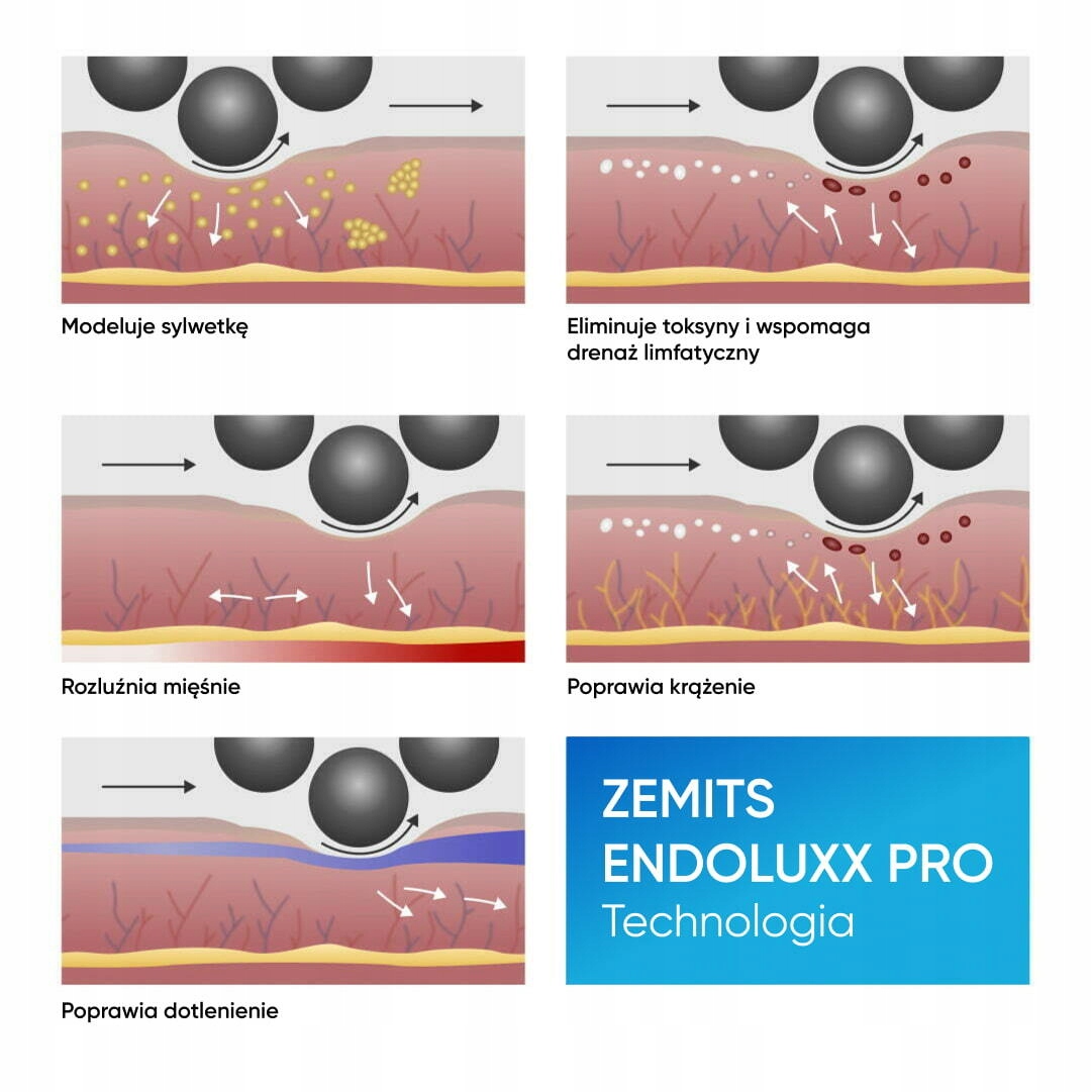 Технология EndoLuxx PRO использует быстрое вращение валиков различной формы и плотности. Этот безопасный, эффективный и целостный метод массажа эффективно стимулирует кожу во всех ее слоях. Поверхностное нанесение валика вызывает трение, что увеличивает приток насыщенной кислородом крови из кожного слоя. С помощью вращающихся роликов мы вызываем более глубокий массаж жировой клетчатки, расположенной в подкожном слое, что уменьшает видимость целлюлита и повышает тонус мышц, моделируя фигуру.