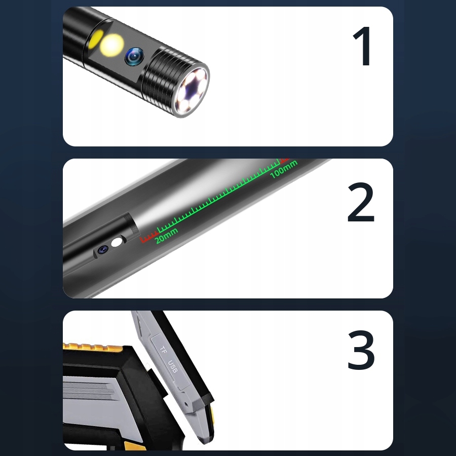 - Кабель длиной 5 метров!Позволяет провести осмотр глубоко внутри объект интереса.