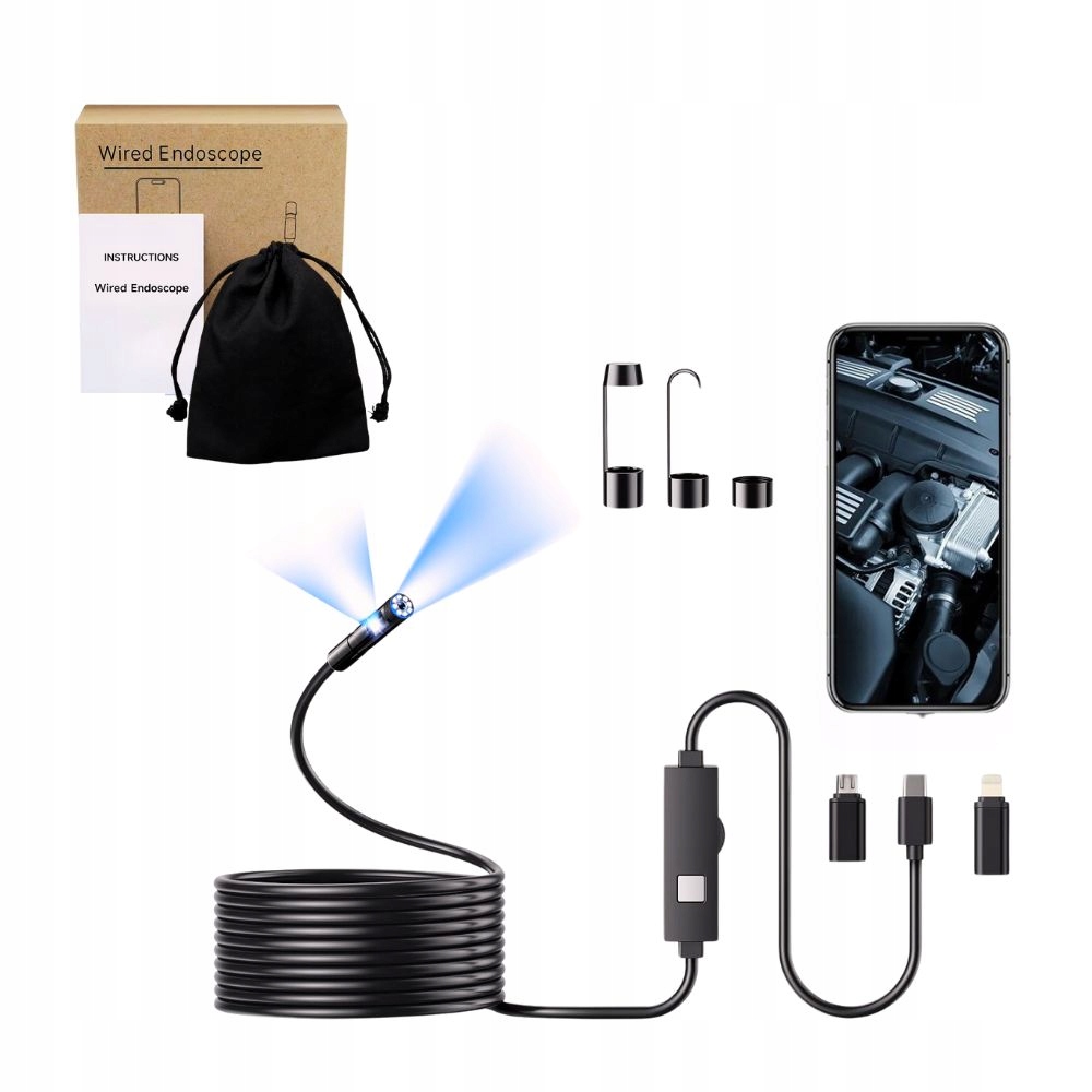 Ендоскоп 3,5 м Full HD оглядова камера для Android IOS USB Type-C 8 LED