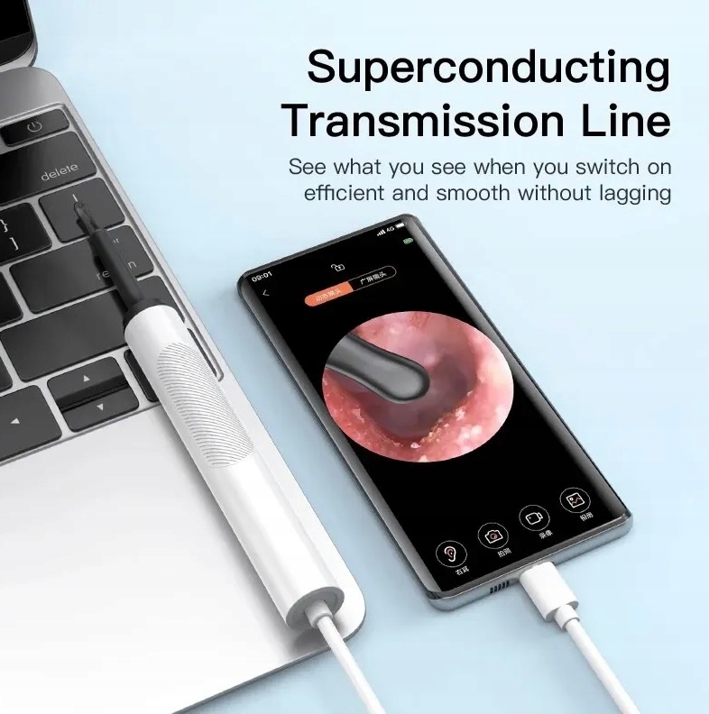 Эндоскоп для очистки ушной серы высокой четкости эффективно удаляет стойкие скопления ушной серы, визуально просматривая недоступные участки.