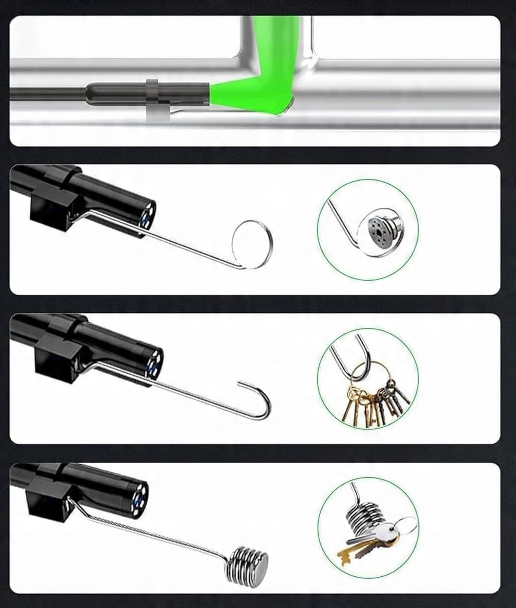 - Инспекционный объектив 2560 x 1440p: инспекционная камера 2K позволяет записывать видео и фотографии со сверхвысоким разрешением, вы можете четко видеть место, которое хотите осмотреть.