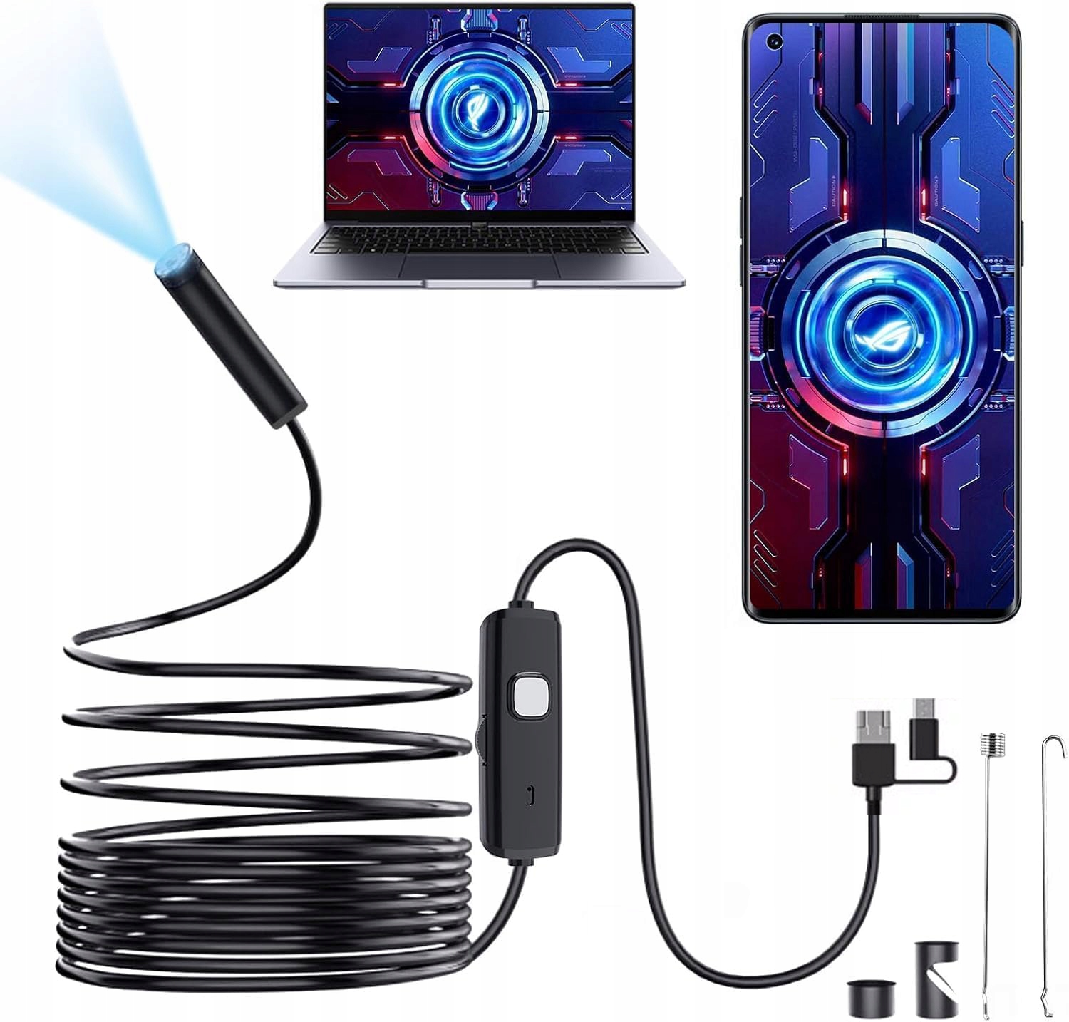 ЭНДОСКОПИЧЕСКАЯ КАМЕРА ДЛЯ КОНТРОЛЯ 5М для ТРУБ ТЕЛЕФОНА ANDROID 6LED USB 3в1
