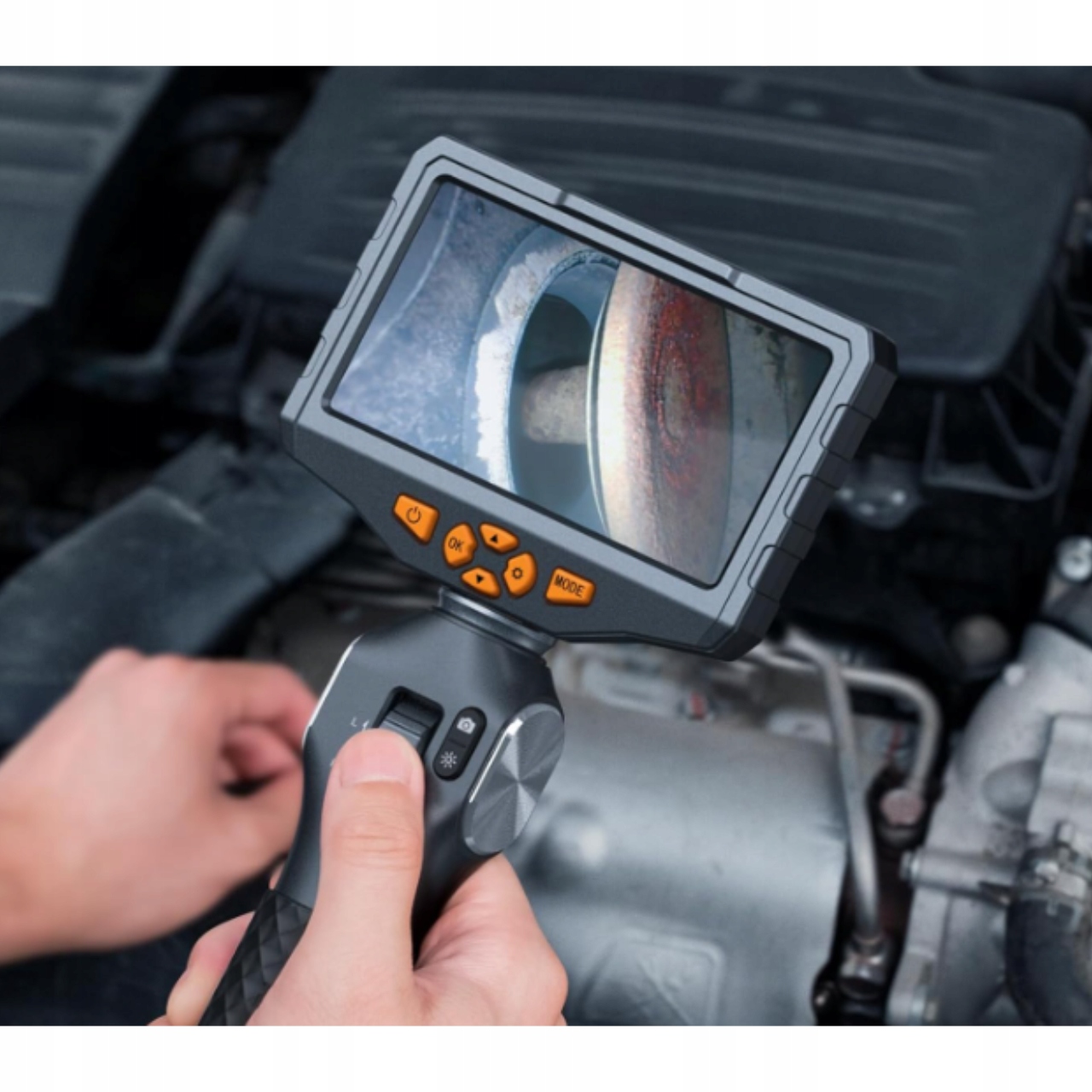 ✅ Голова 3,9 мм - включает проверку в очень узких пространствах. 5.0 "IPS ЖК -экран - Шравный и прозрачный предварительный просмотр изображений в качеством HD без необходимости дополнительных устройств.