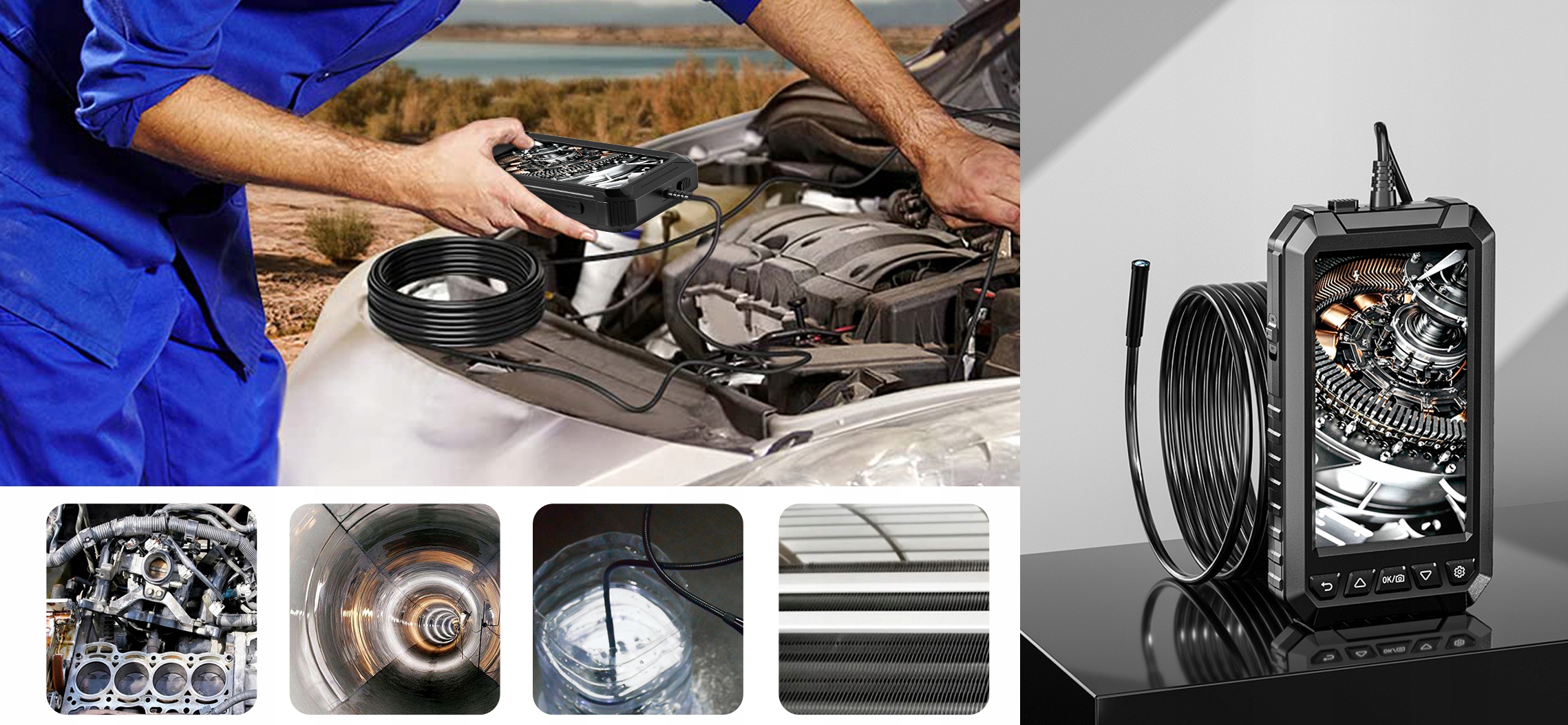 В нашей эндоскопической камере используется высококачественный датчик изображения. Изображение отображается на большом и четком 5-дюймовом IPS-дисплее.