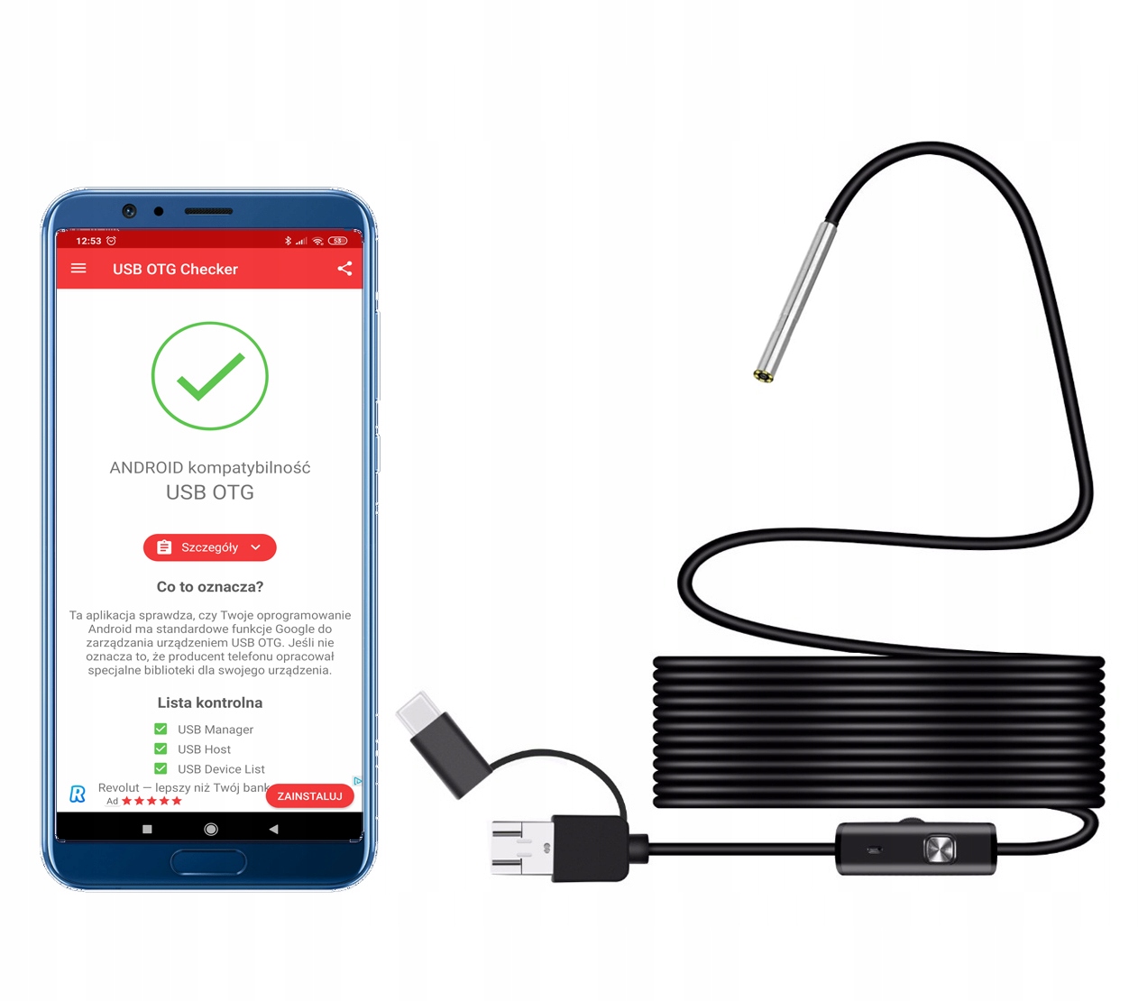 ЕНДОСКОПНА КАМЕРА ДЛЯ ОГЛЯДУ HD 720p ANDROID USB-C