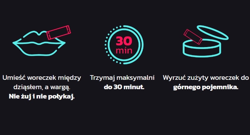 Просто положите мешок между губой и десен - точно так же, как вам удобно, и энергия постепенно выпустит себя на ваше тело. Благодаря революционной технологии X и наиболее эффективной форме поглощения вещества в организм (через слизистые мембраны), вы будете наслаждаться полной энергией в течение длительного времени.