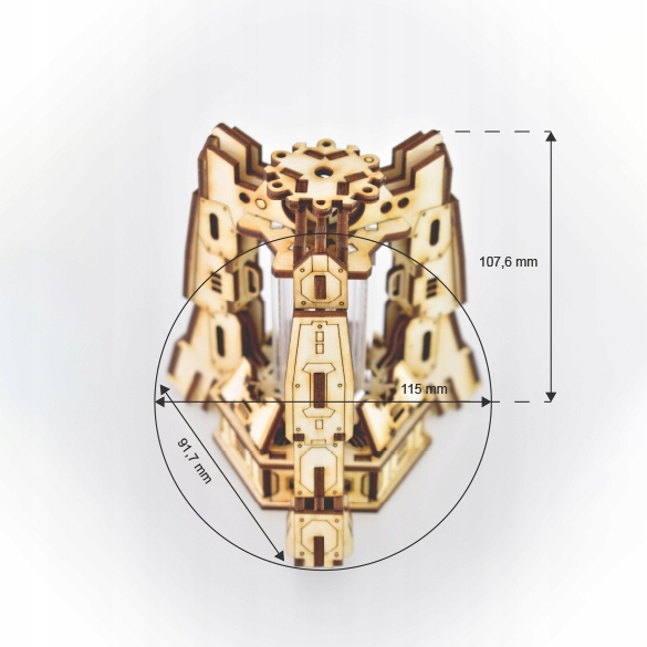 Модель изготовлена из вырезания лазера и выгравированных изделий Плана и плана. Складывание не требует клея.