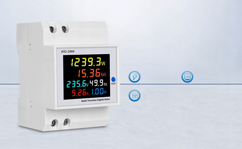 - ✔ 6 в 1 мультиметром, один границ раздела может показать 6 различных типов измерительных параметров, включая напряжение, электричество, мощность, энергию, частоту и коэффициенты мощности. Чтение, подходящее как днем, так и ночью. Широко используется в системах измерения электроэнергии, школ, на рынках, в бытовых приборах, промышленности, лабораториях и т. Д.