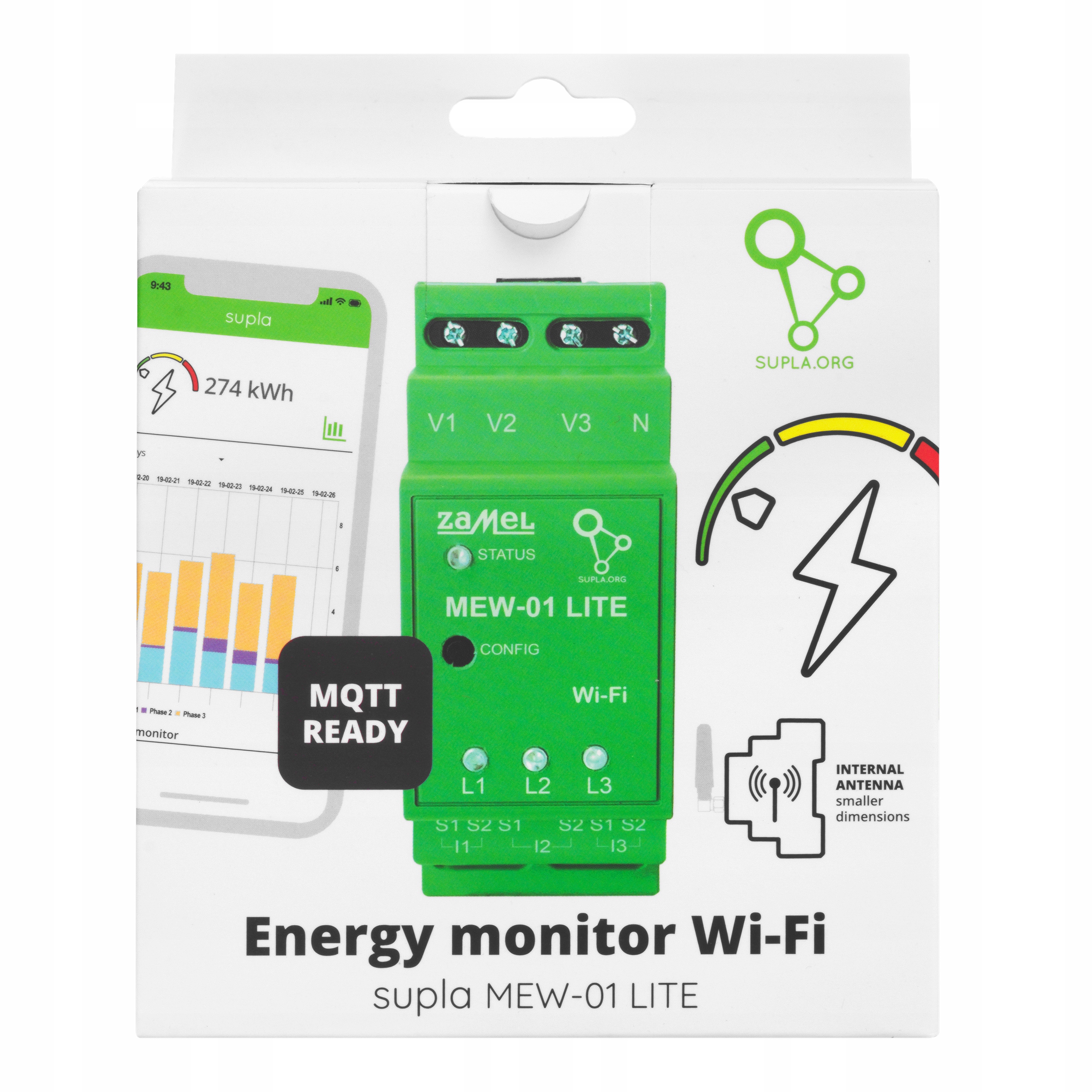 Трехфазный монитор (счетчик) электроэнергии Wi-Fi, одноканальный, двусторонний h1> Производитель: Zamel Marek: Код производителя SPLA: SPL10000040 H2> Короткое название: MEW-01 Lite Ean: 59036990852 H2>
