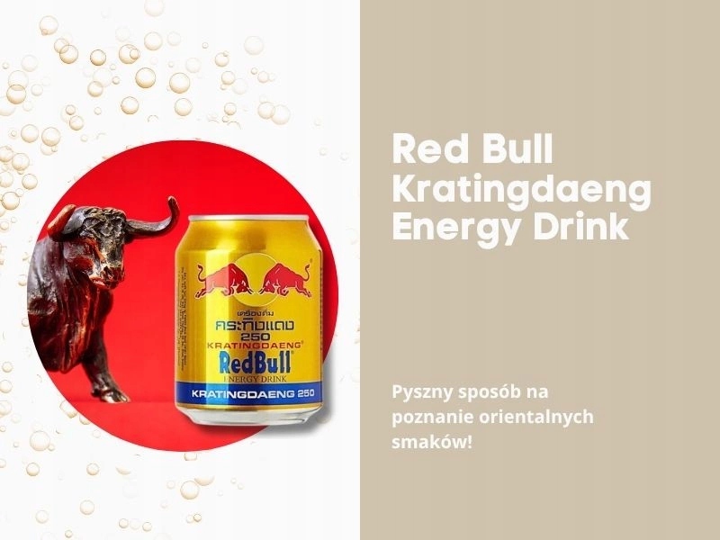 Red Bull Kratingdaeng Energy Drink — оригинальный тайский энергетический напиток, прототип всемирно известного Red Bull. Он был создан в Таиланде в 1970-х годах и до сих пор очень популярен. популярен в Азии. Именно из этого рецепта родился мировой феномен энергетических напитков. Этот классический стимулирующий напиток был разработан для придания энергии, улучшения концентрации и снижения усталости. Отличается интенсивным, слегка сладковатым вкусом и высоким содержанием кофеина и таурина.