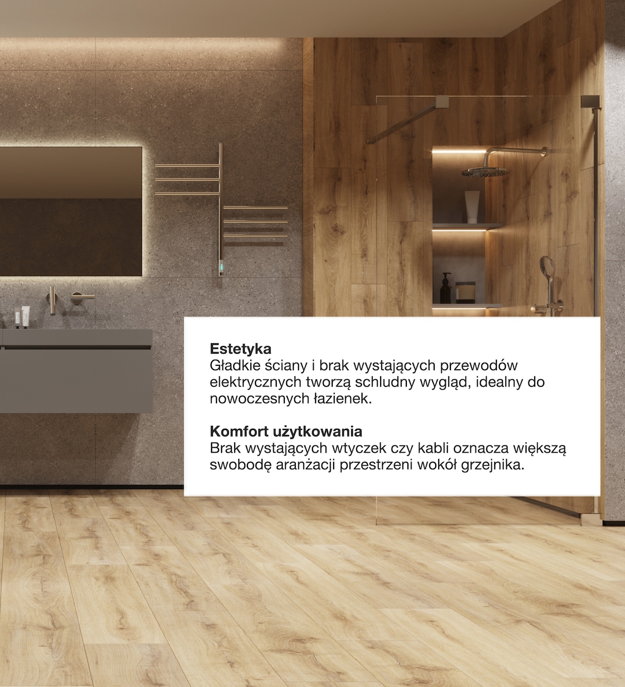 Радиатор оснащен регулятором температуры , который расположен на вертикальном коллекторе и 3H таймер (он может отключаться через 3 часа работы в этом режиме). Максимальная температура составляет около 65 ° C, что не вызовет ожоги у детей и домашних животных. Он быстро нагревается, является энергией, экономит потребление электроэнергии до 70% в месяц.