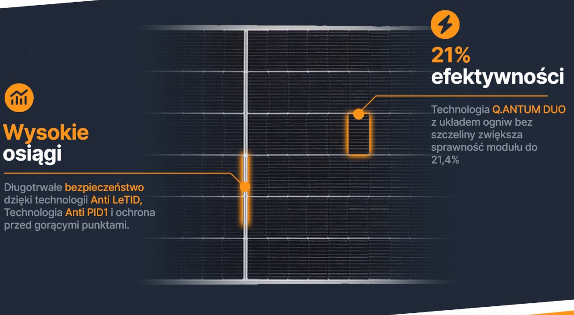 Благодаря запатентованной технологии Q.ANTUM и оптимизированному соединению ячеек со значительно меньшим количеством зазоров этот модуль обеспечивает оптимальную эффективность и производительность. Простое уменьшение расстояния между солнечными элементами Q.ANTUM повышает эффективность до 21,4%.
