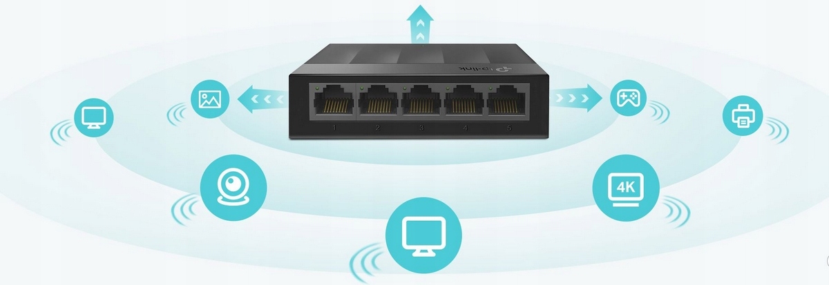 LS1005G, 5-портовый настольный гигабитный коммутатор, позволяет увеличить скорость сети. Не блокирующая архитектура и 5 портов 10/100/1000 МБ/с позволяют быстро перенести тяжелые, требующие высоких файлов, без создания помех