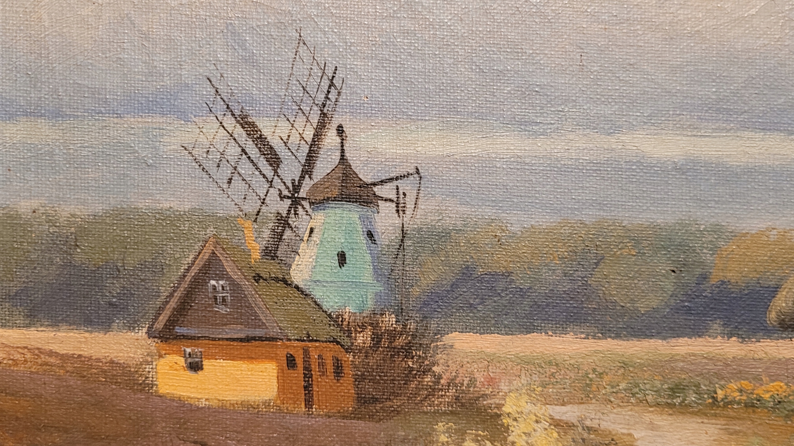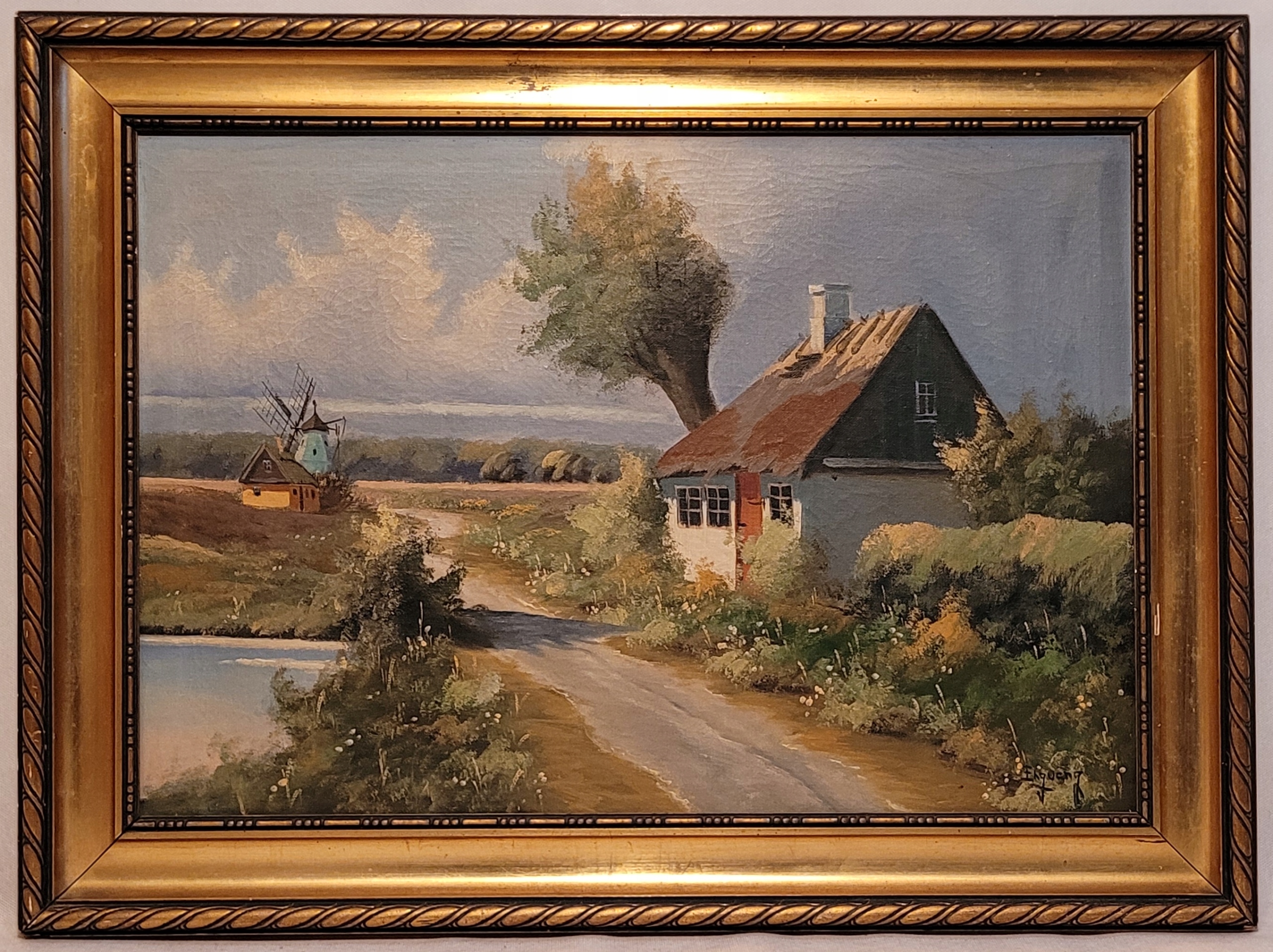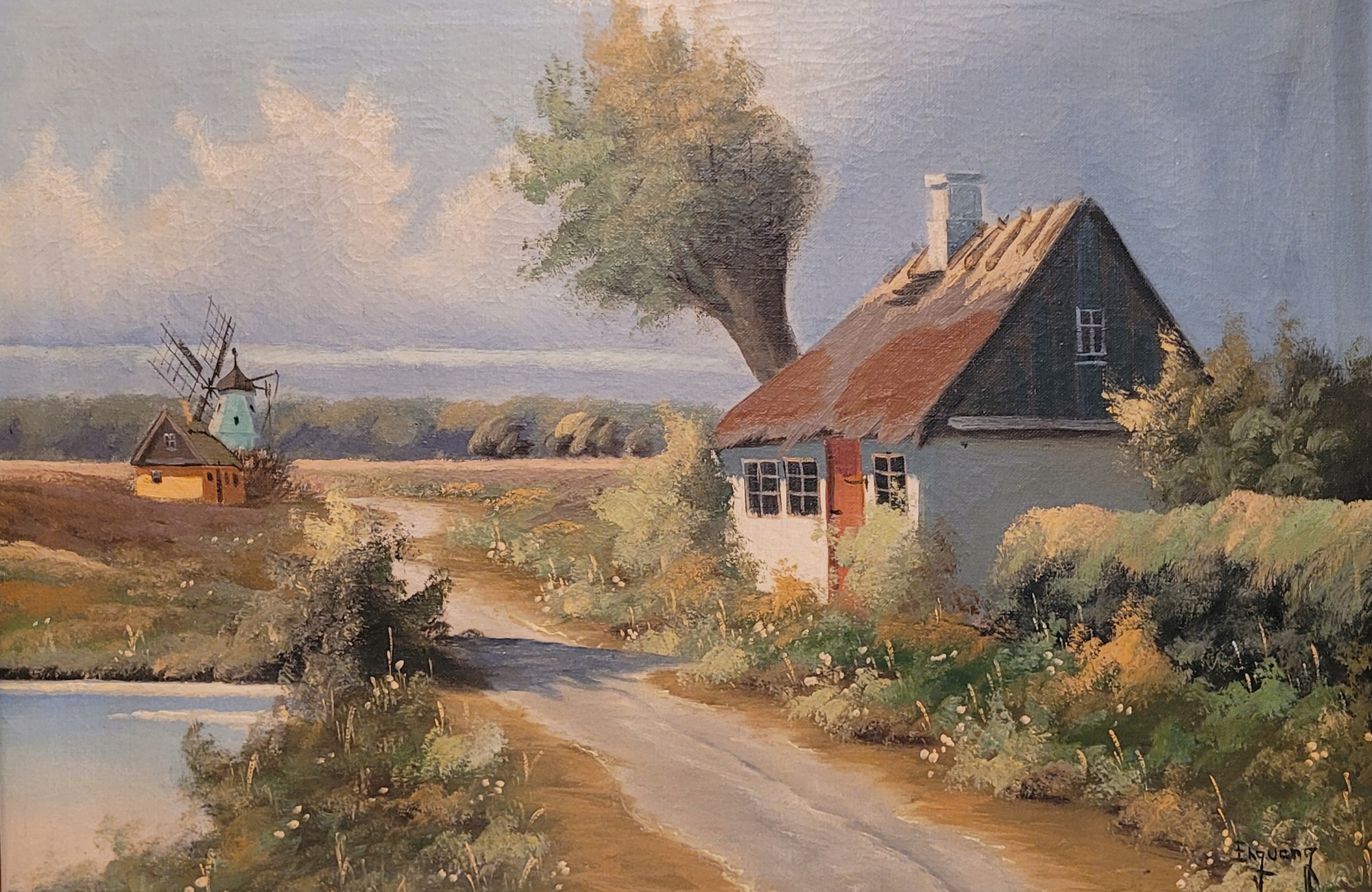 Enguang - «Страночный пейзаж с ветряной мельницей», старая нефтяная картина.