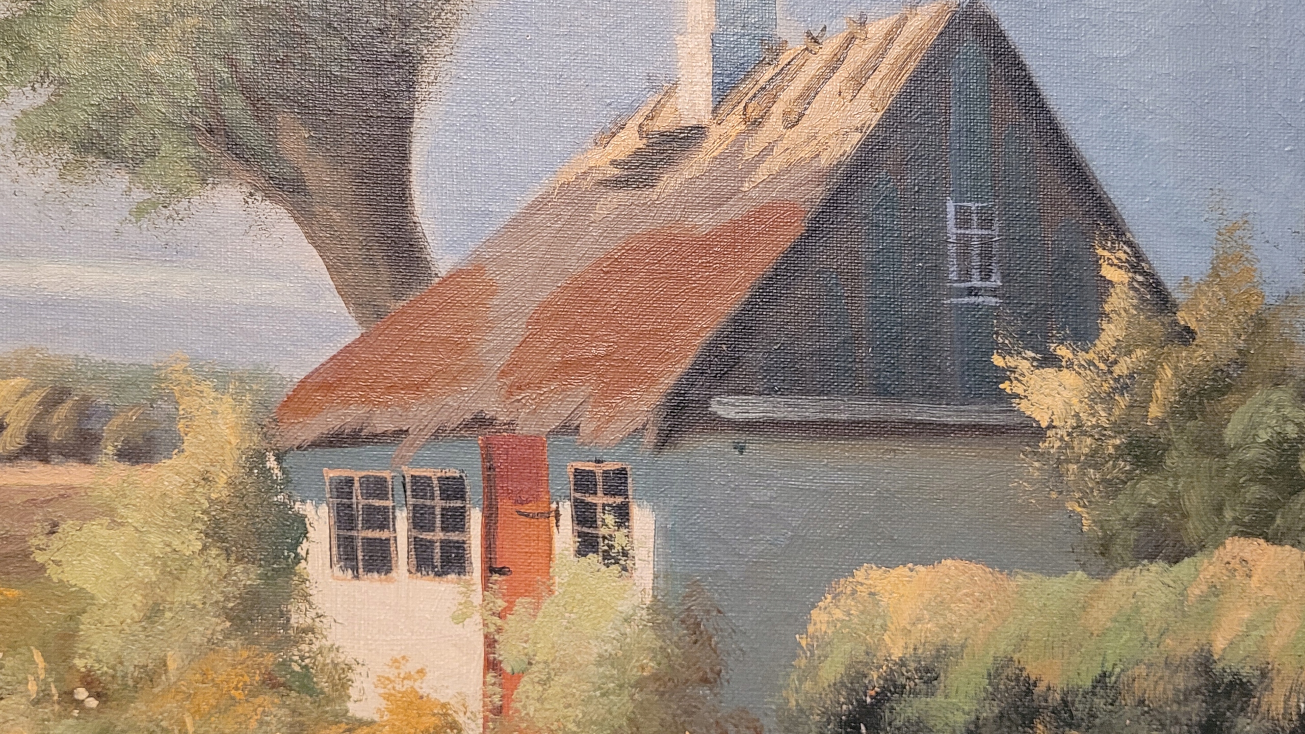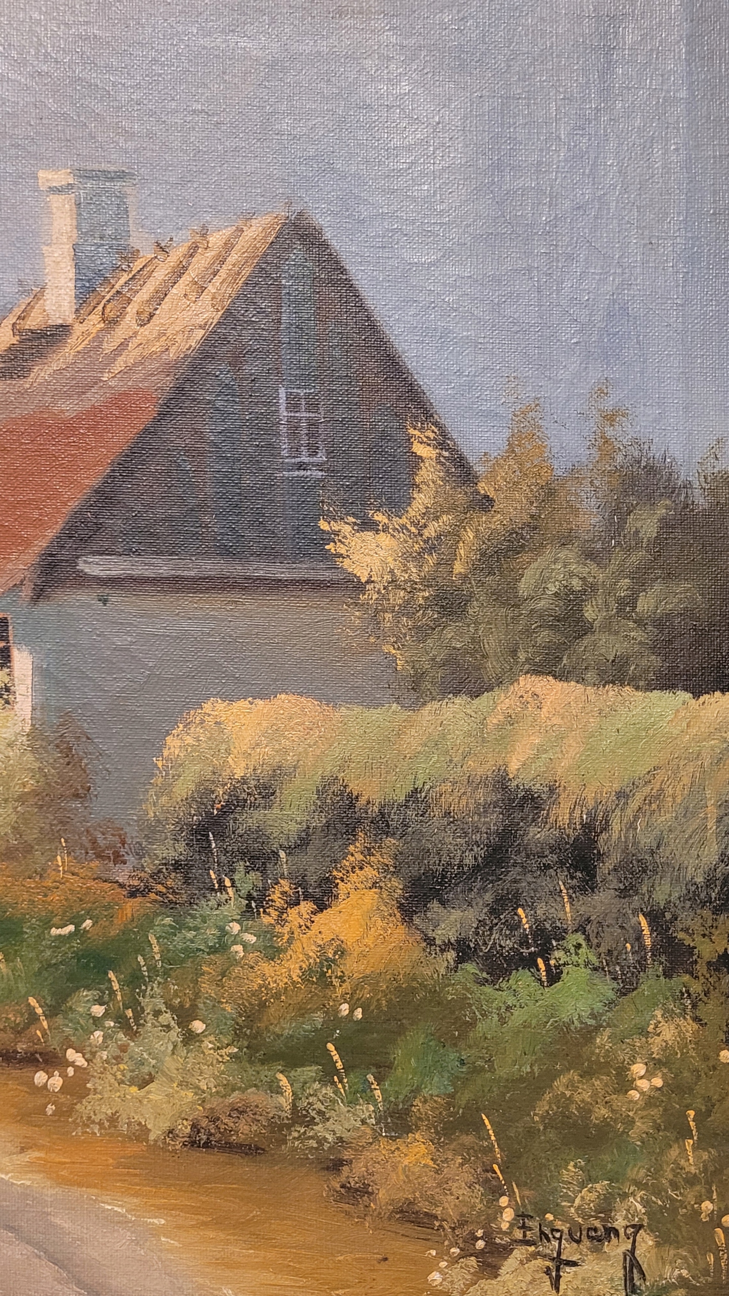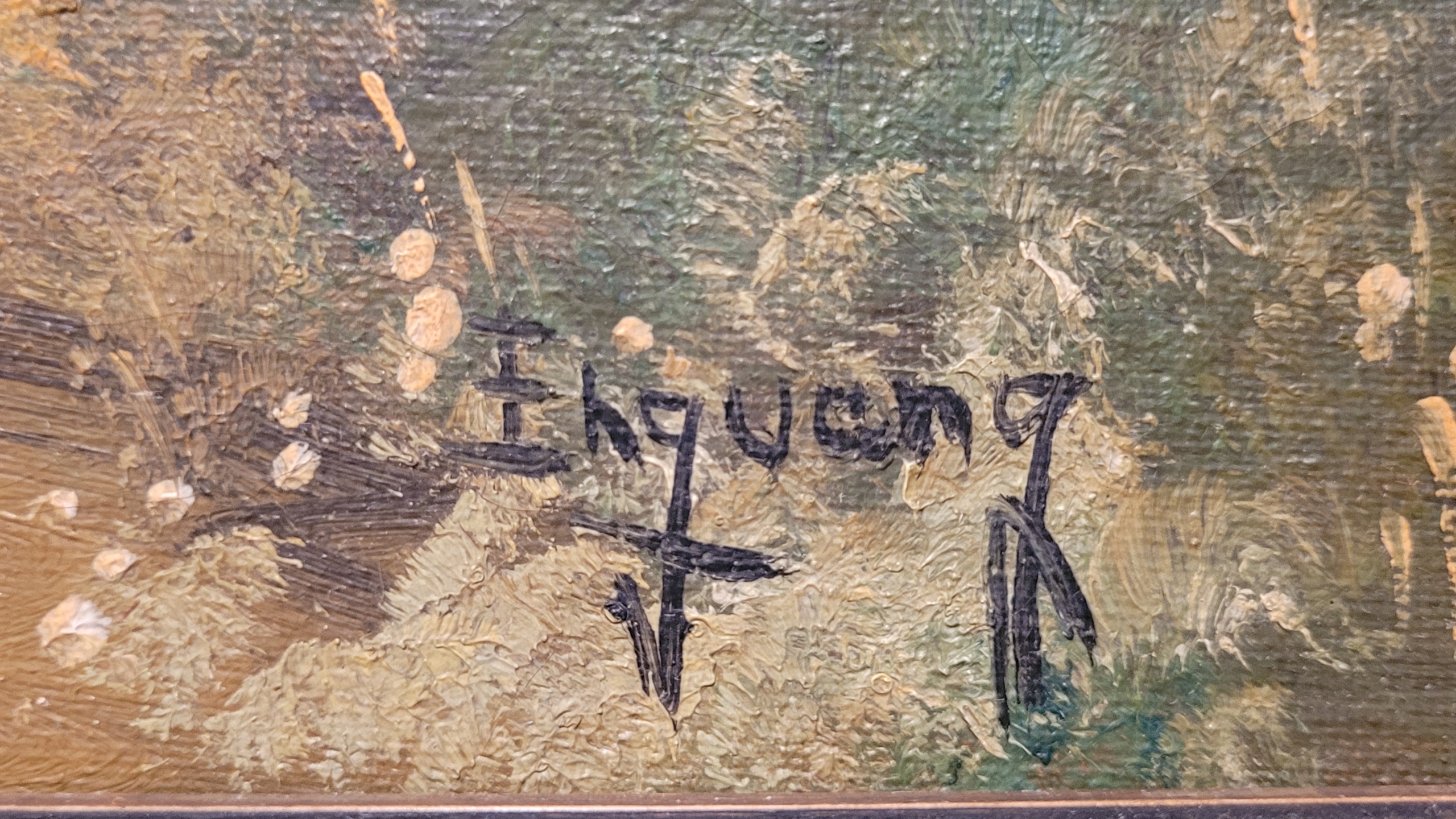 Enguang - «Страночный пейзаж с ветряной мельницей», старая нефтяная картина.