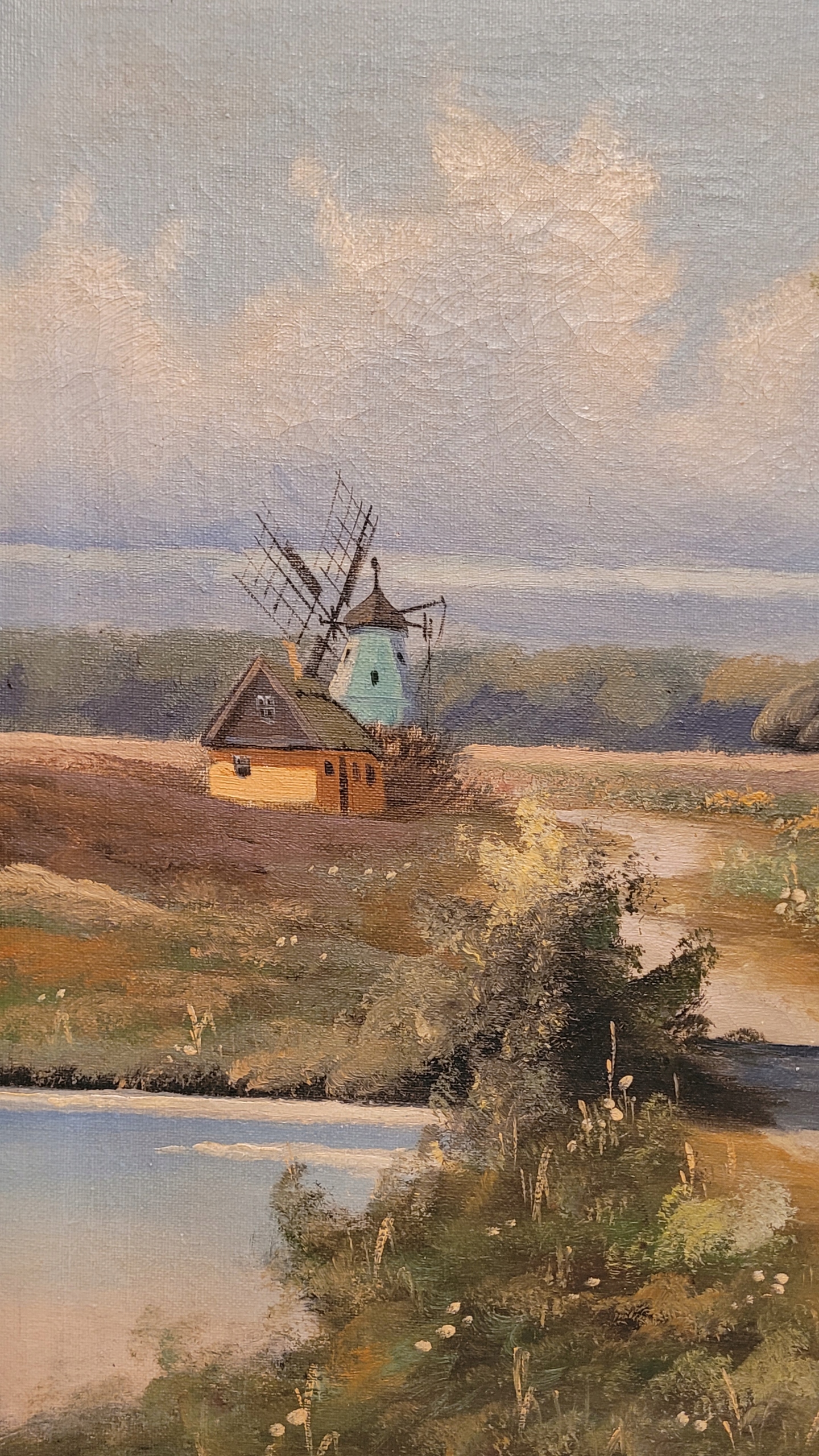 Объект продажи - это красивая старая нефтяная картина «Страночный ландшафт с ветряной мельницей».