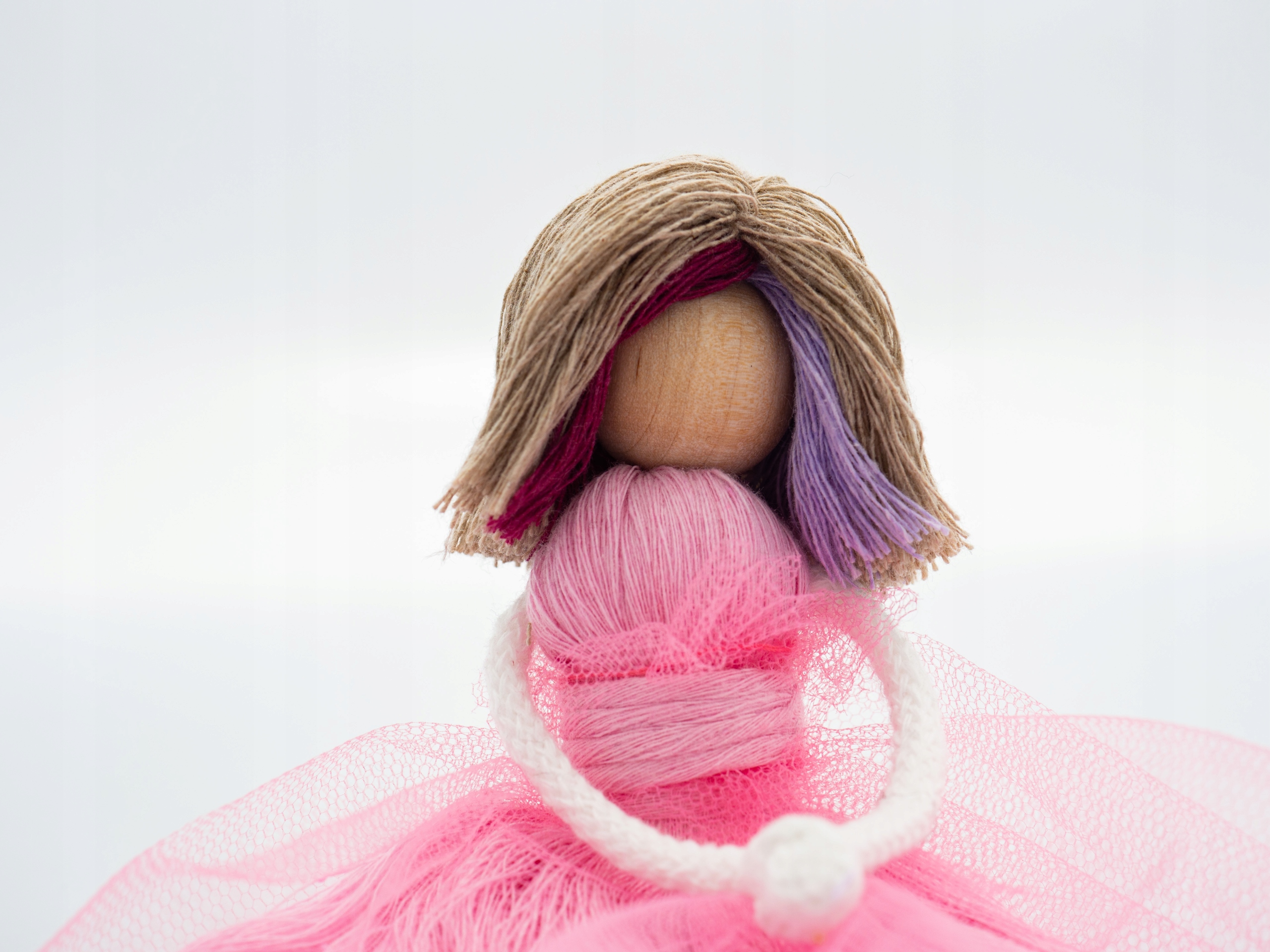 Кукла Энид ручной работы, в розовом платье, с короткими светлыми волосами и мелированием.