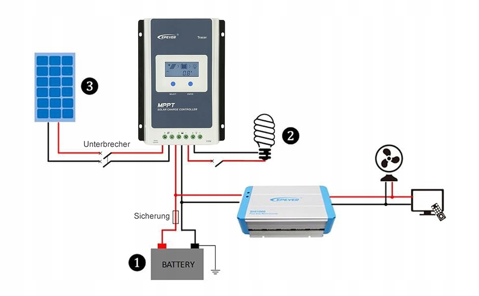 Отслеживание точки максимальной мощности (MPPT): контроллер солнечного заряда MPPT с эффективностью отслеживания не менее 99,5 %, высокой точностью обнаружения и пиковой мощностью. запись, эффективность преобразования макс. 98%, более эффективная зарядка.